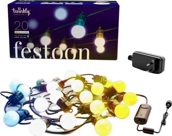 Twinkly Festoon Smart Outdoor Lyskjede med hvitt lys - 10 m.