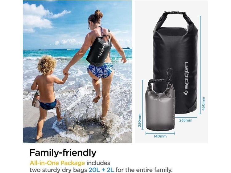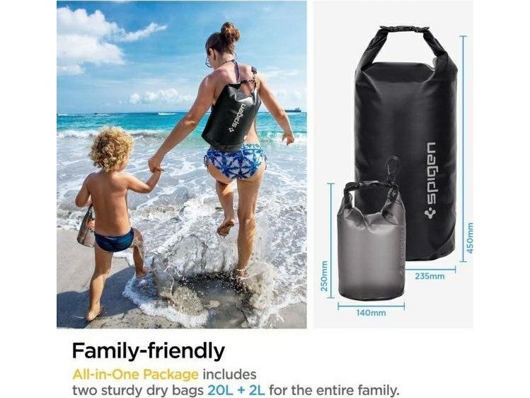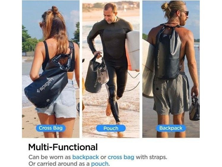 Spigen AquaShield A630 Waterproof Dry Bag Black. Product colour: Black, Grey, Capacity: 20 L, Coloration: Monochromatic