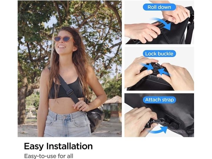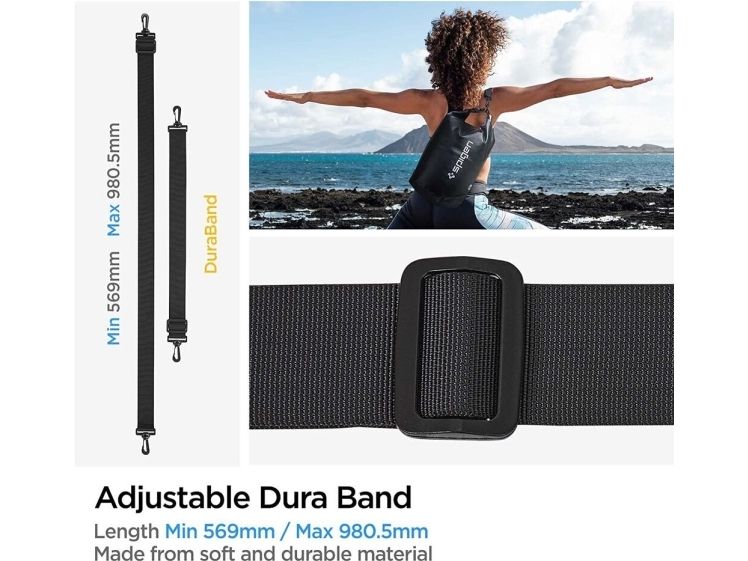 Waterproof dry bag or waterproof dry sack for protecting personal items and outdoor gears. Solid roll-top closure system provides secure watertight seal. Removable, adjustable strap to fit different users, children or women, for your outdoor or indoor activity and water sports: travel, camping, swimming, spa, cycling, surfing, fishing. Light weight and portable dry bag can be folded into a small size for easy carrying. Includes a set of 2 ultralight Dry Sack in 2 different sizes (20L and 2L). Dura Band Strap Length: Min 569mm / Max 980.5mm.