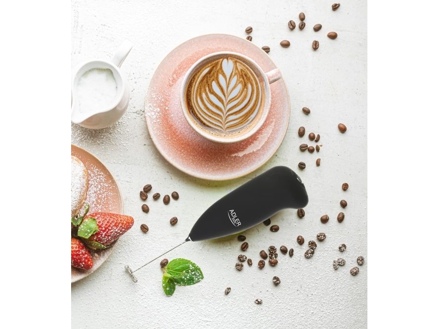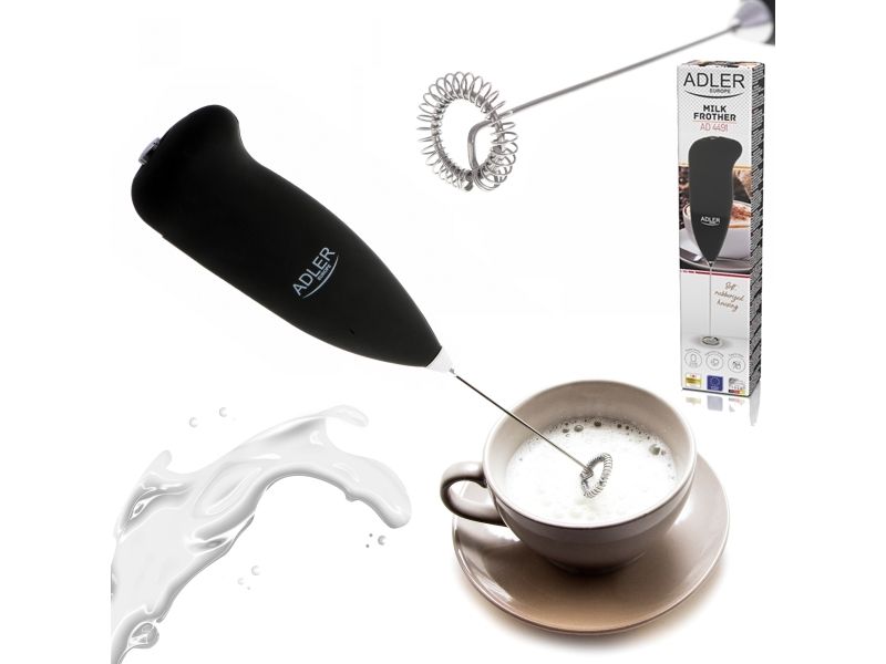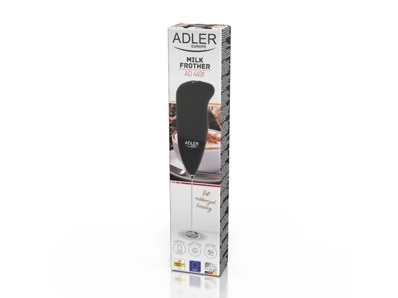 If you adore having wonderful smooth cappuccino or macchiato you may enjoy preparing it at home. To prepare delicious milk froth within a moment, which will be perfect for your favourite beverages, you can use AD4491 milk frother. This very light and handy device that fits in a hand is coated with rubber which guarantees its endurance, high quality and makes it convenient to use.Adler AD 4491. Type: Handheld electric milk frother, Product colour: Black, Whisk material: Stainless steel. Power source: Battery, Battery type: AA, Battery voltage: 3 V. Weight: 50 g. Package width: 50 mm, Package depth: 35 mm, Package height: 120 mm