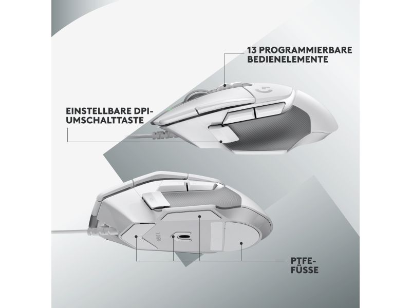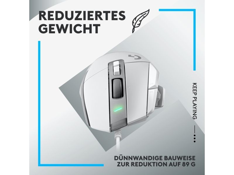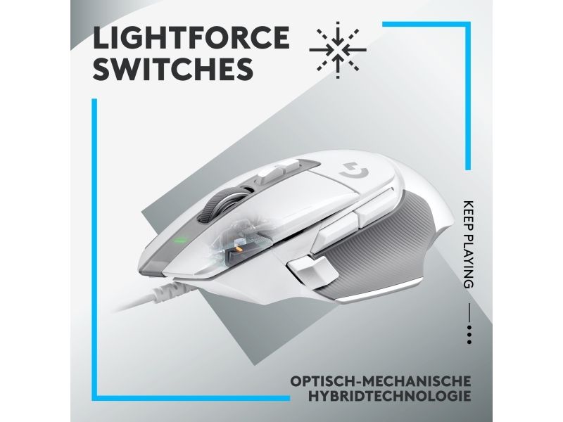 Logitech G502 X - Mus - optisk - 13 knapper (LIGHTFORCE-brytere) - kabling (USB) - Hero 25K sensor - Hvid