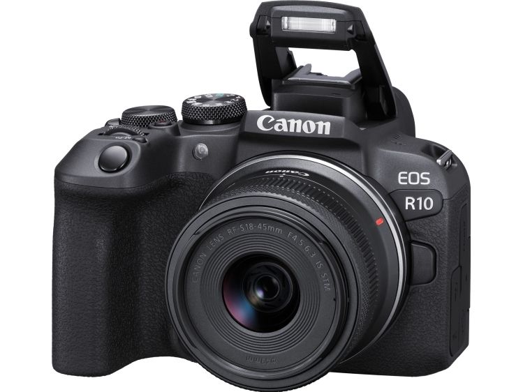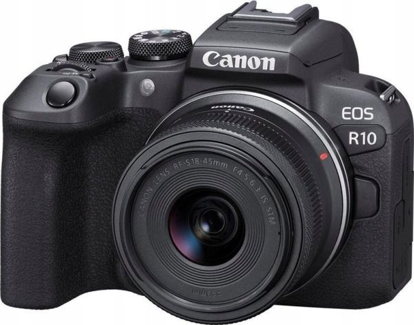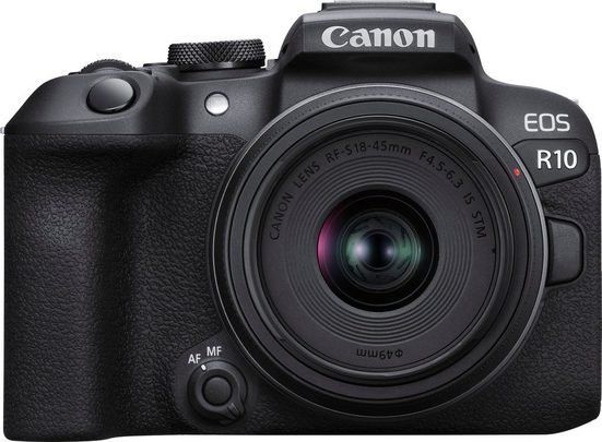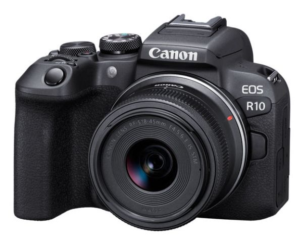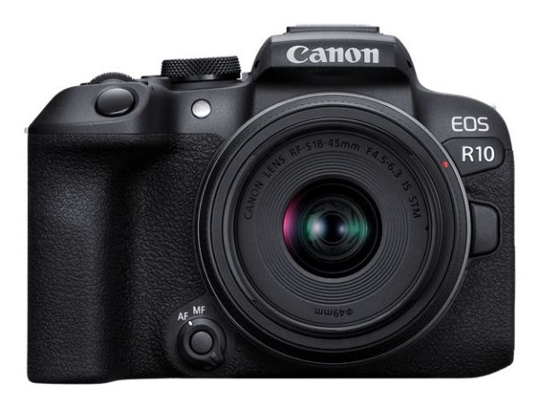 Canon EOS R10 - Digitalkamera - speilløst - 24.2 MP - APS-C - 4K / 60 fps - 2.5optisk x-zoom RF-S 18-45 mm F4.5-6.3 IS STM linse - Wi-Fi, Bluetooth - svart