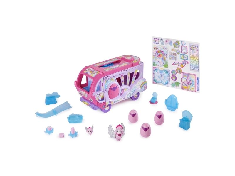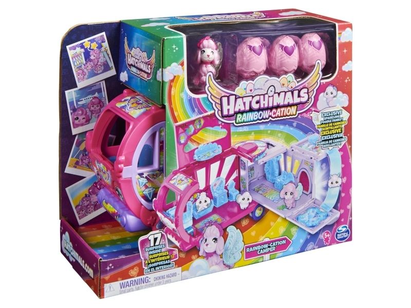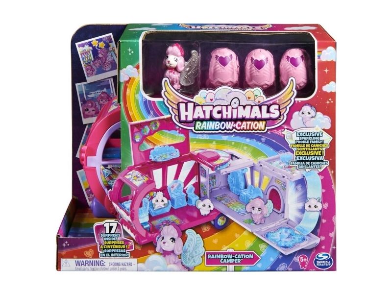 Opplev lekedato-moro med Hatchimals CollEGGtibles og Playdate-pakken. Hver Rainbow-kation Hatchimals-familie har sitt eget unike utseende og tema inspirert av deres favorittferieaktiviteter. Oppdag ni nye familier, inkludert Wolf Bikers, Koala Campers, Lama-blomsterister, Luau Leopards, Sparkling Poodles, Cat Dancers, Dog Pilots, sjeldne skøytepingviner og supersjeldne Unicorn-hårstylister – de er alle så søte. Hver Playdate-pakke har et egg med topp- og bunnluke, tre små barn, en baby, to tilbehør og grafikk for din playdate-scene. Overraskelseseggene i Playdate-pakkene kommer med fire forskjellige Hatchimals-venner inni – to søsken fra en familie og to fra en annen familie. Knekk toppen av Hatchimals-egget for å finne to små barn og et tilbehør, og knekk deretter bunnen for å finne enda en liten gutt og babyen. Etter å ha oppdaget sekkens bedårende karakterer, åpne midten av egget for å avsløre din overraskende regnbuekation-scene. Du kan finne en campingferie, luftballongferie, snøferie, badelandferie og mer. Inne i emballasjen er det andre tilbehøret og grafikken for å legge til scenen din. Det unike lekesettet og Hatchimals og tilbehøret er perfekte for dine eventyr som late som leker. Med over 60 nye Rainbow-cation Hatchimals og 10 Playdate-pakker å samle (leker selges separat), fullfør alle ni Hatchimals-familier. Hatchimals CollEGGtibles overraskelsesleker for jenter er perfekte for barn som liker søte samleobjekter, actionfigurer, dukker og små leker. De lager flotte bursdagsgaver til barn, julegaver, strømpestoppere, påskekurvstoppere og mer. Ta med deg en endeløs ferielekedag med Hatchimals CollEGGtibles Playdate Pack.