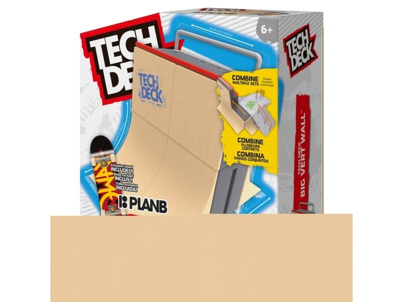 Få litt luft med Tech Deck, de virkelige gripebrettene med autentisk grafikk fra ekte skateselskaper. Big Vert Wall X-Connect Park Creator-rampesettet inneholder alt du trenger for å bygge en fantastisk tilpasset park for deg å perfeksjonere fingerskateboardferdighetene dine. Sett opp forskjellige kombinasjoner med to ramper, bokser, en skinne for å mestre og for å lære og utvikle triksene dine. Skjær ut vertveggen, skyv kappen, slip skinnen eller sett opp og tilpass stedet slik du vil. Skate parken med det inkluderte eksklusive Danny Way-signaturplan B Skateboards-gripebrettet og legg til miniskateboard-samlingen din. Kombiner parken med andre X-Connect-kompatible ramper, for eksempel Flip N’ Grind, Bowl Builder, Neon Mega Park eller Nyjah Skatepark rampesett (hver selges separat) for å bygge den ultimate gripebrettparken. Bruk Big Vert Wall X-Connect Park Creator med din Tech Deck gripebrettsamling eller Tech Deck BMX (hver selges separat). Tech Deck gripebrett og rampesett er for barn og skateelskere fra 6 år og oppover. Hvis du vil ha ekte skate-grafikk fra ekte skateselskaper, må det være Tech Deck - begynn i det små, gå stort og samle dem alle.
