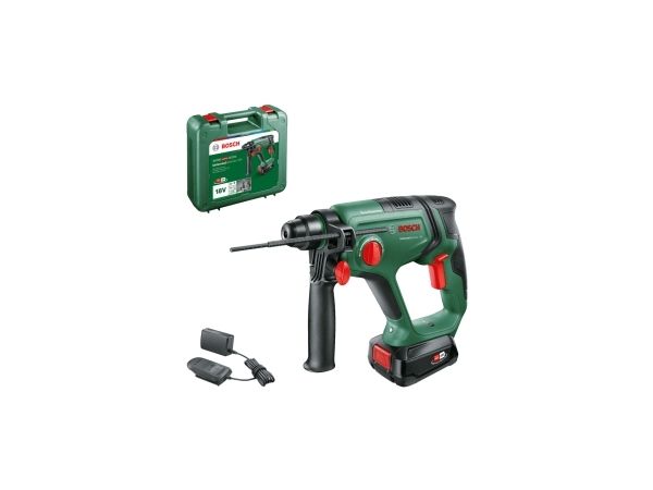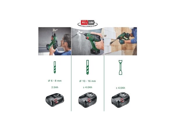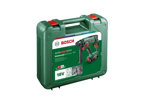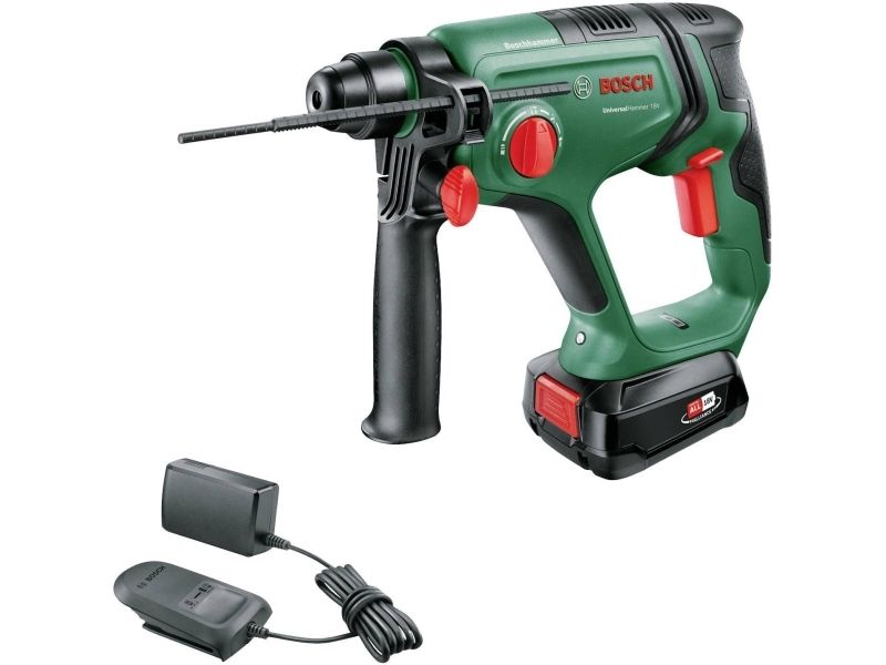 This cordless powerhouse puts the pleasure back into drilling thanks to its combination of high-impact force, light handling, and flexibility. It propels a 2.0 J pneumatic Bosch hammer mechanism that is ideal for drilling holes up to 16 mm diameter into concrete, with an SDS plus drill bit. This impressive force also knocks down wall tiles and chisels cable ducts. For less fatigue on long jobs, DIY enthusiasts will appreciate the lightweight, compact hammer size. And with the vibration and rotation control, the tool shakes less and is more stable.