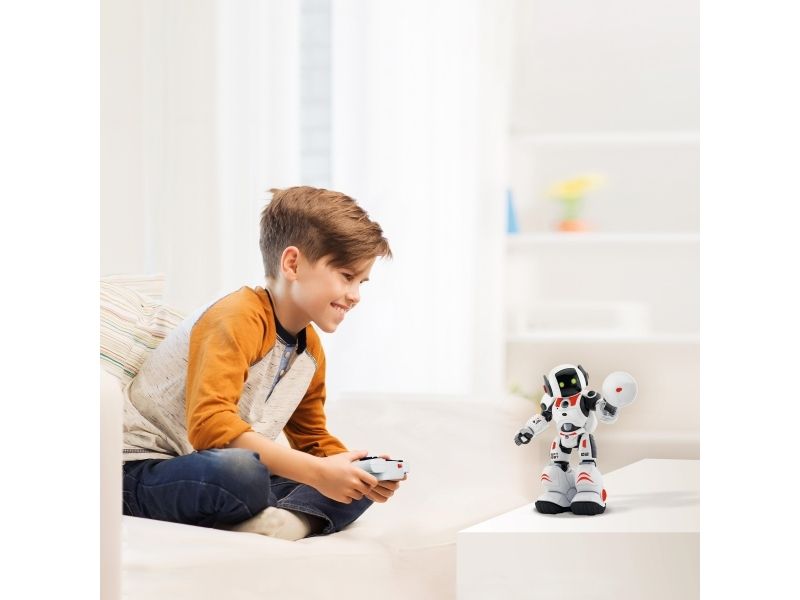 Robotens høyde 28 cm. Fjernkontrollen krever 2 x AA-batterier (ikke inkludert) og roboten 3 x AA 1,5V-batterier (ikke inkludert). Fra 5 år.