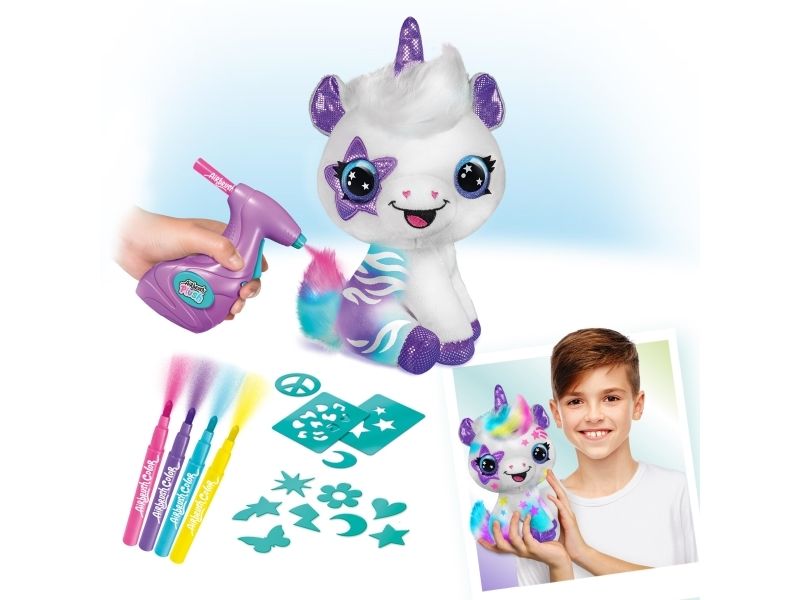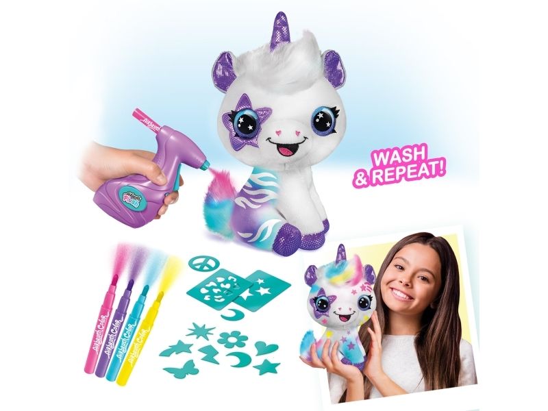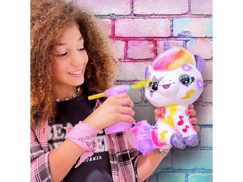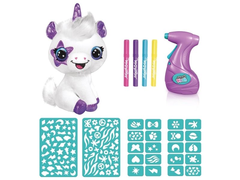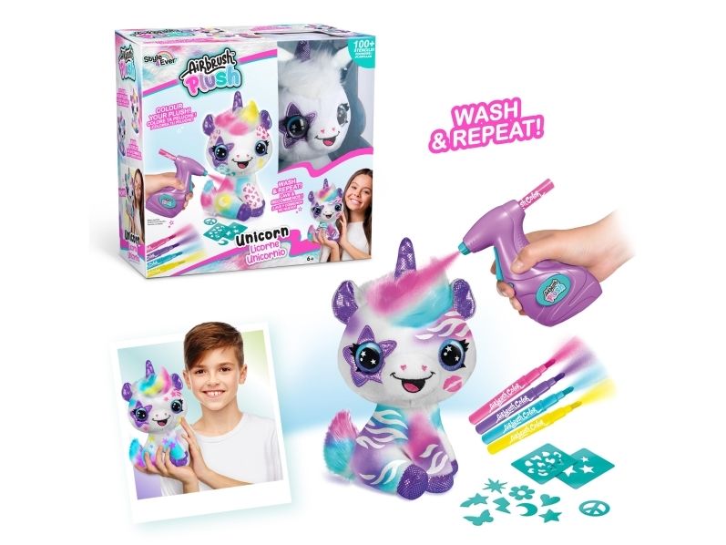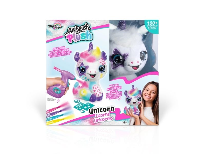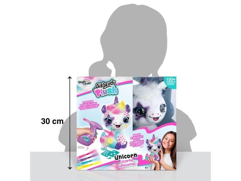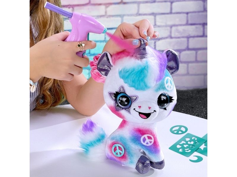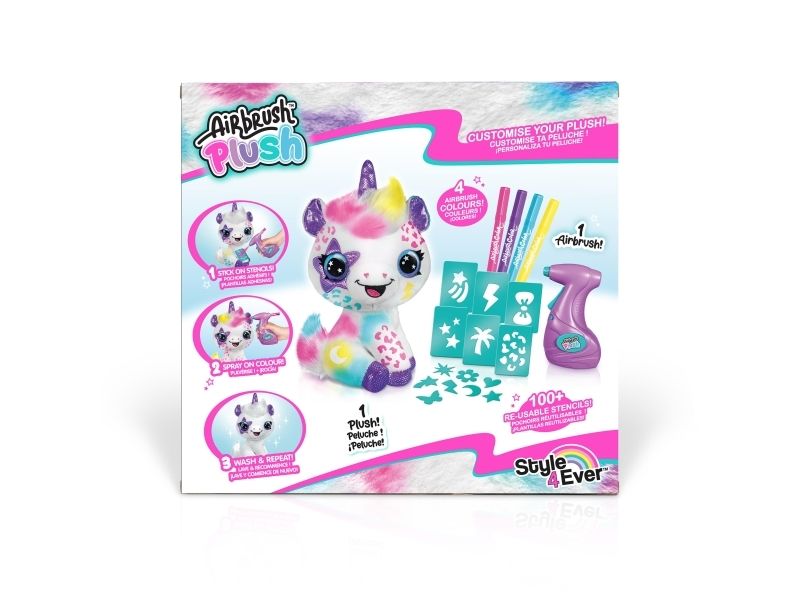 Sett farge på plysjen din! Bruk airbrushen for å gi plysjen din et helt unikt design. Du kan bruke sjablongene for å få ikoner i vakre farger på plysjen, eller du kan velge å være kreativ og gå freestyle. Alt du trenger å gjøre er å feste sjablongene på kosedyret, velge farge og spraye med airbrushen – og når du er klar for et nytt design er det bare å vaske kosedyret og begynne på nytt med ny pynt. Fra 6 år.