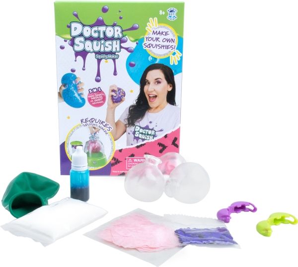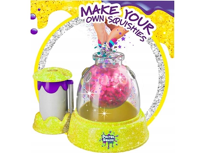 Doctor Squish elsker å finne de beste klemmelekene for å se hva som er inni! Hun elsker å lage sine egne klemmeballer og andre ting som kan klemmes på. Med Squishy-maskinen kan du nå også lage dine egne squishies. Bruk av denne påfyllingspakken krever en Squishy Maker-maskin. Fra 8 år.