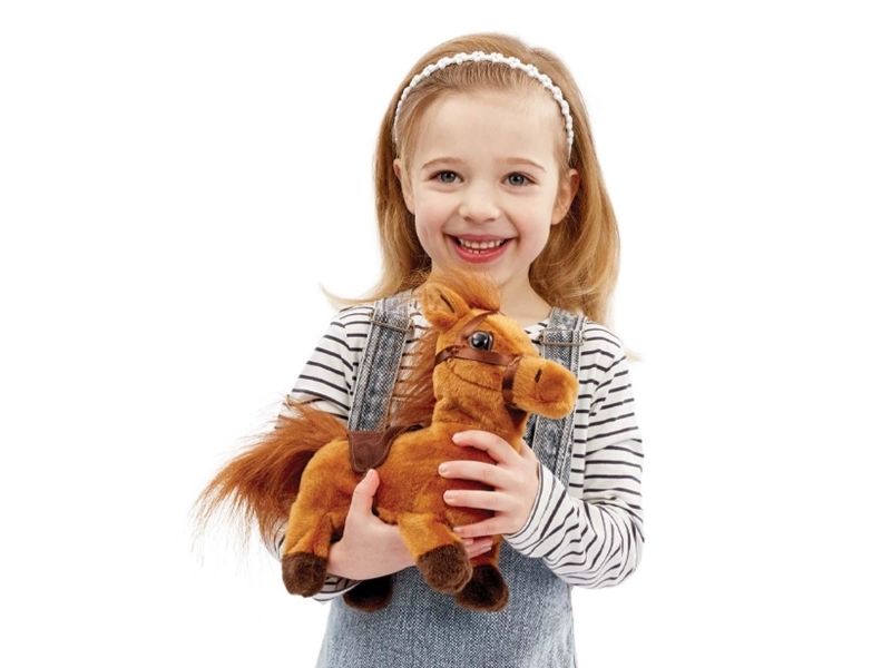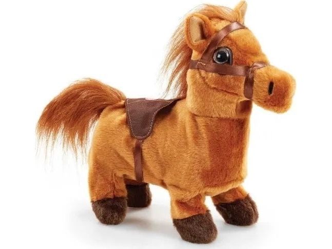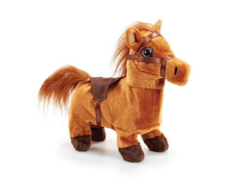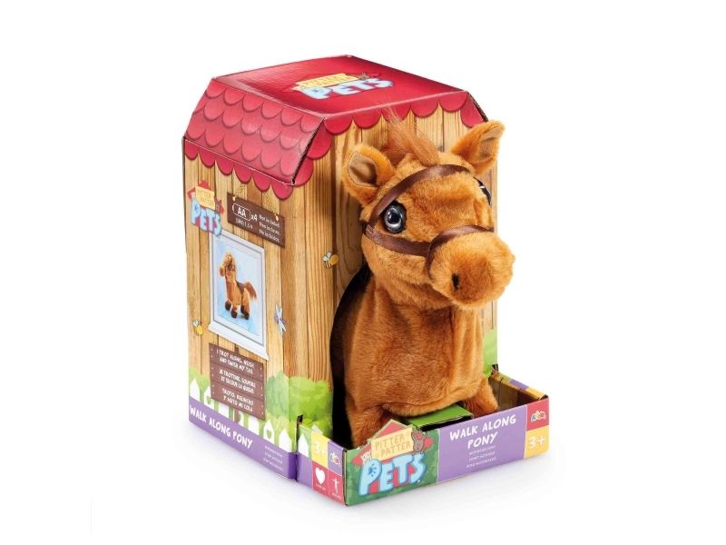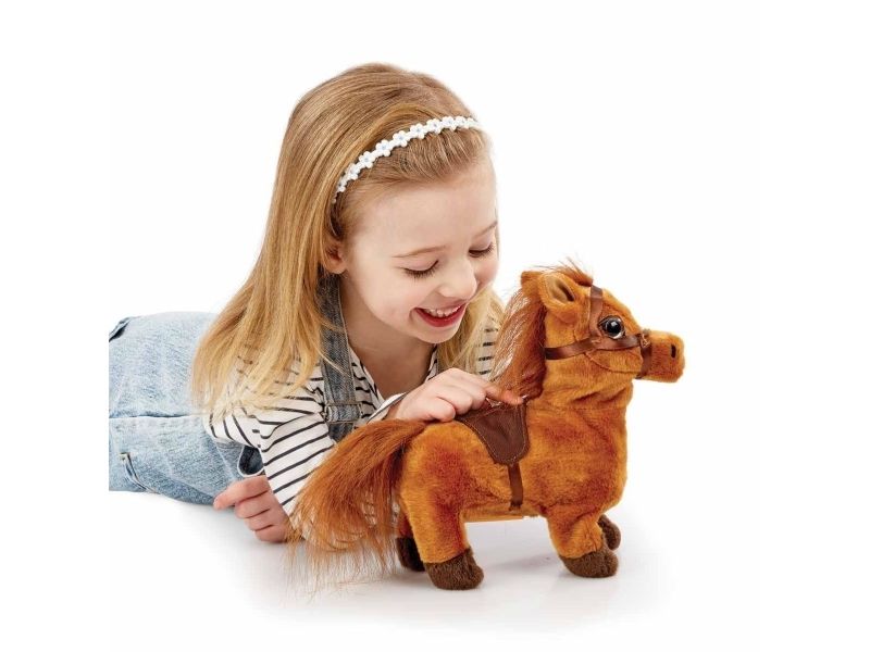 Ponnien som går elsker å gå på lange turer, og hennes realistisk knegge og klikk klakk vil holde de små underholdt i timevis. Når ponnien er trøtt etter en lang og spennende dag, kan den bruke innpakningen som et hyggelig hjem for å slappe av. Krever 4 x AA batterier (ikke inkludert). Fra 3 år.
