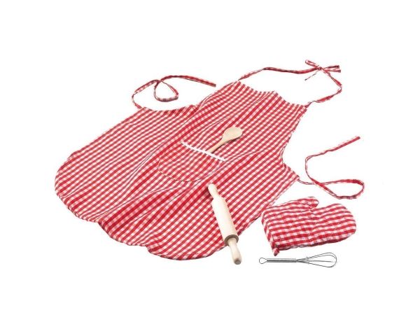 Gjør plass til den neste mesterbakeren. Fram med kjevla, og så blir det kaker! De små blir fort inspirert av hva mamma og pappa gjør. Derfor vil de også gjerne hjelpe til hjemme, eller så kan man hvert fall inspirere dem med dette settet fra Junior Home. Med dette settet kan de små være med på kjøkkenet når det skal bakes. Eller kanskje de har sitt eget lekekjøkken? Settet består av et forkle, en gryteklut, en skje, en kjevle og en visp. Egnet til barn fra 3 år.