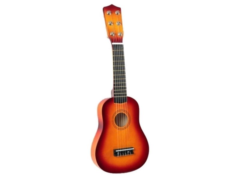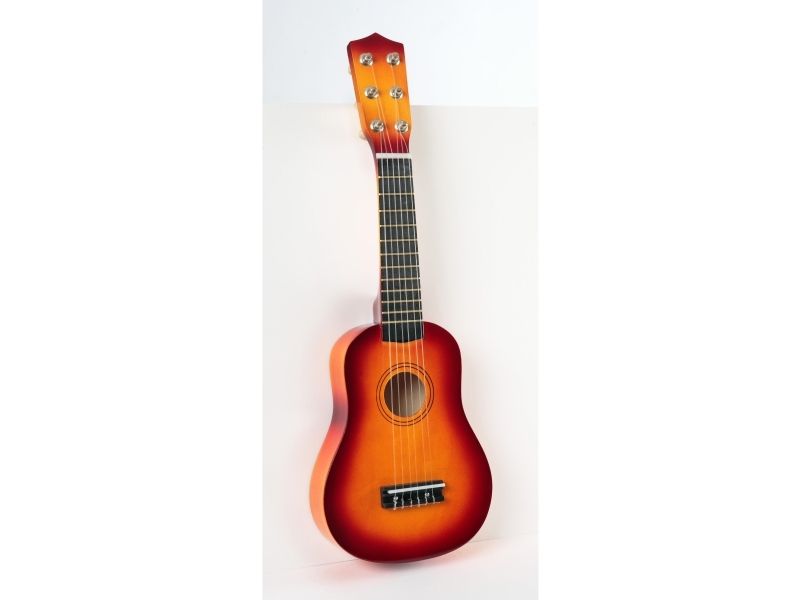 Min første tregitar. Flott gitar i tre med 6 myke strenger som kan stemmes. Lengde 53 cm. Fra 3 år.