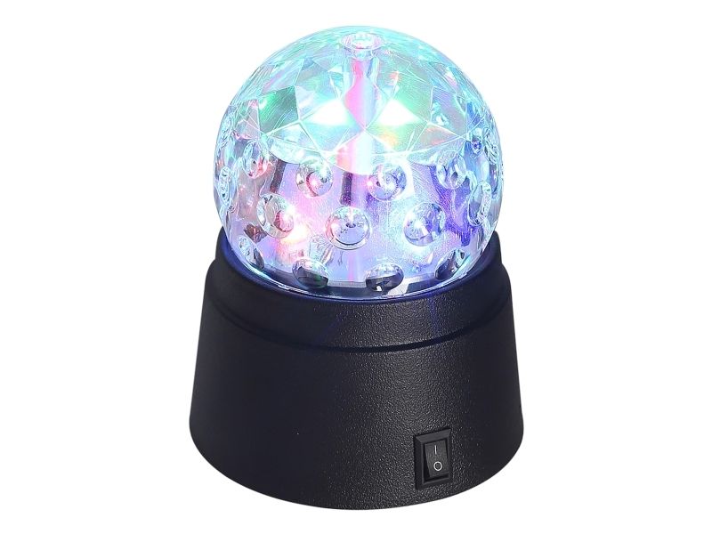 Sett i gang en kjempefest med denne diskokulen! Den er liten, men effektiv! Kulens LED-lys lyser i flotte, fargerike mønstre. Diskokulen er ideell som gave! Kulen krever 3 x AA-batterier (ikke inkludert).