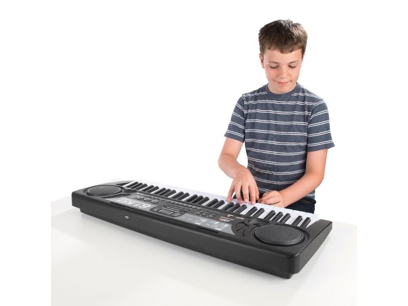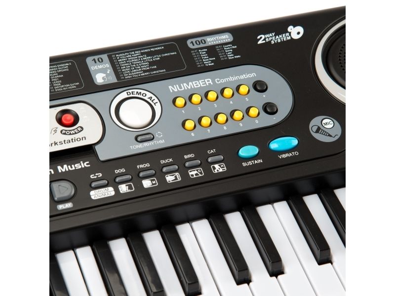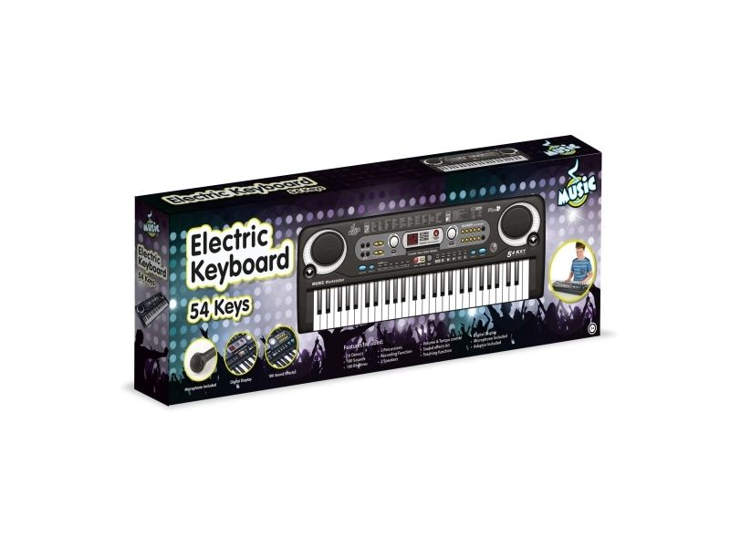 Keyboard med mange effekter og funksjoner inkl. mikrofon. Lær å spille keyboard og bli introdusert til musikkens verden med dette boardet. Med dette keyboardet kan selv nybegynnere lære å spille. Med mange morosamme effekter og en mikrofon, kan du underholde hele familien. Keyboardet er en enkel måte å utvide den musikalske kunnskapen og ferdighetene samtidig som du har det gøy! Boardet inneholder funksjoner som: 10 demosanger, 100 rytmer, opptaksfunksjon, volumkontroll og hastighetskontroll, lydeffekter, læremodus, 100 toner, 5 instrumenter, 2 høyttalere og en digital skjerm. Det følger også med en mikrofon og en hoved adapter. Keyboardet er 6,7 x 70 x 30 cm. Fra 5 år.