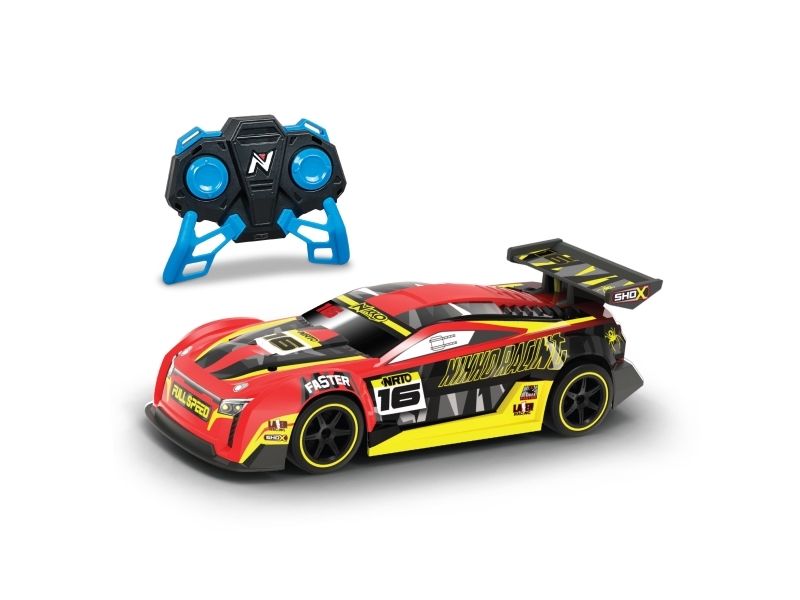 Mærk farten og kontrollen med denne Nikko letvægts racerbilserie i 1:16 skala. Med det robuste materiale og præcisionsteknikken i denne racerbilserie sætter du dig i førersædet i en fuldt fungerende racerbil. 2,4GHz senderen betyder øjeblikkelig respons og 40 m rækkevidde, og bilens kvalitetskonstruktion vil modstå enhver test, du udsætter den for. Det er jo en Nikko! Tophastighed 14 km i timen. Senderen bruger x x AAA batterier (ikke inkluderet) og køretøjet 4 x AA batterier (ikke inkluderet). Fra 6 år.
