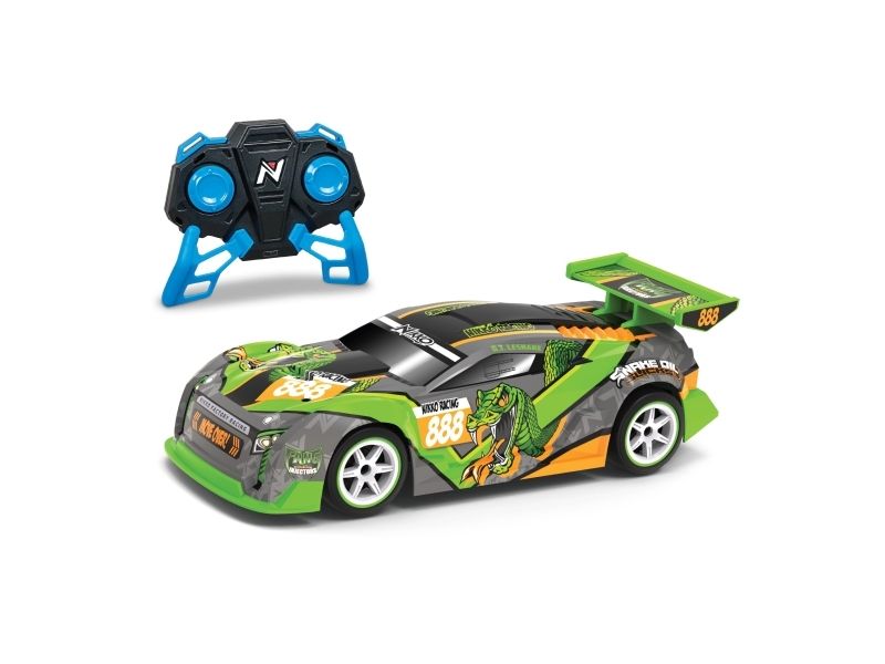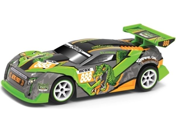 Mærk farten og kontrollen med denne Nikko letvægts racerbilserie i 1:16 skala. Med det robuste materiale og præcisionsteknikken i denne racerbilserie sætter du dig i førersædet i en fuldt fungerende racerbil. 2,4GHz senderen betyder øjeblikkelig respons og 40 m rækkevidde, og bilens kvalitetskonstruktion vil modstå enhver test, du udsætter den for. Det er jo en Nikko! Tophastighed 14 km i timen. Senderen bruger x x AAA batterier (ikke inkluderet) og køretøjet 4 x AA batterier (ikke inkluderet). Fra 6 år.