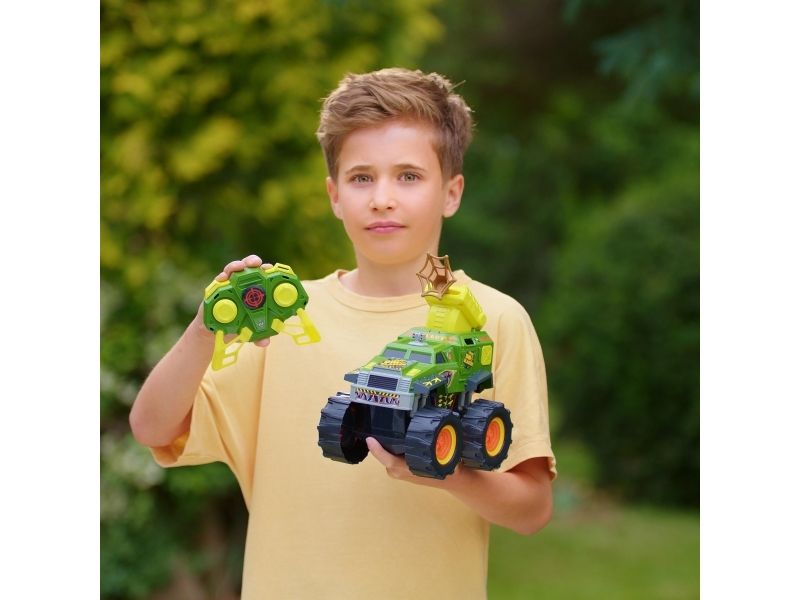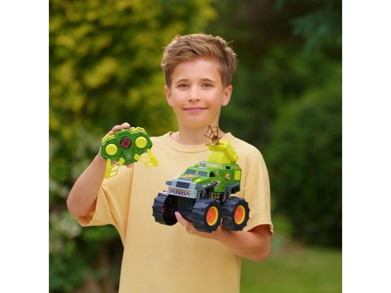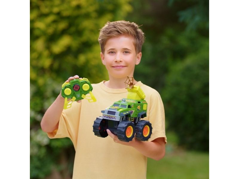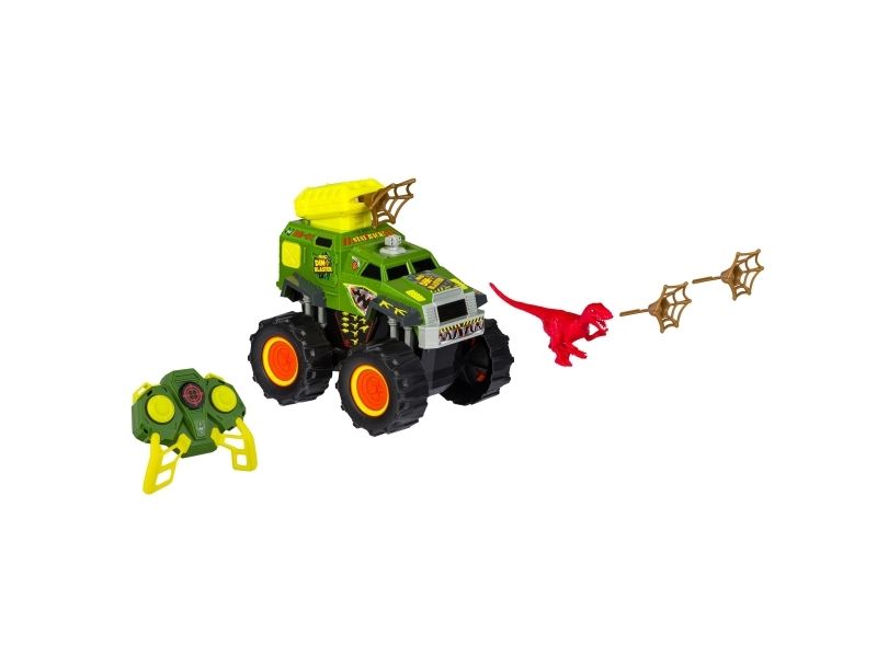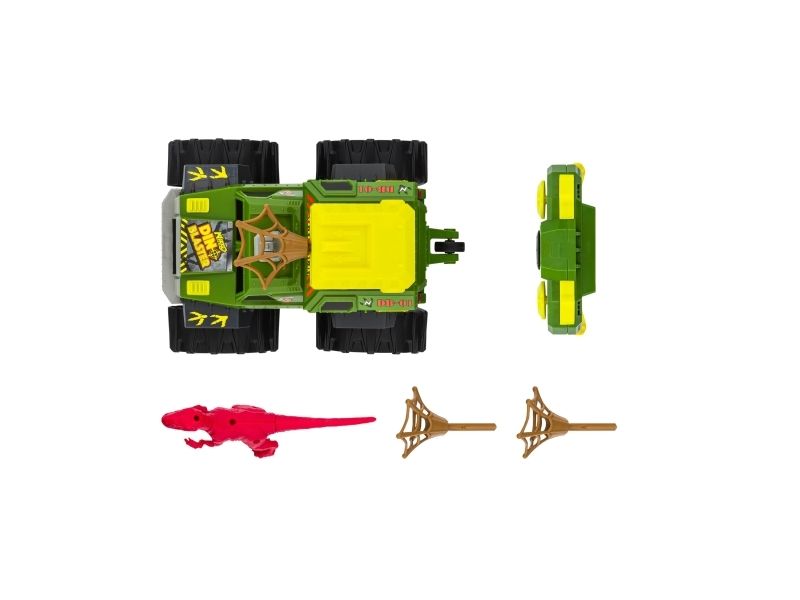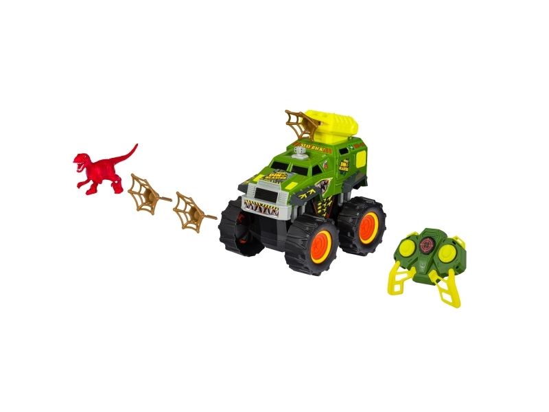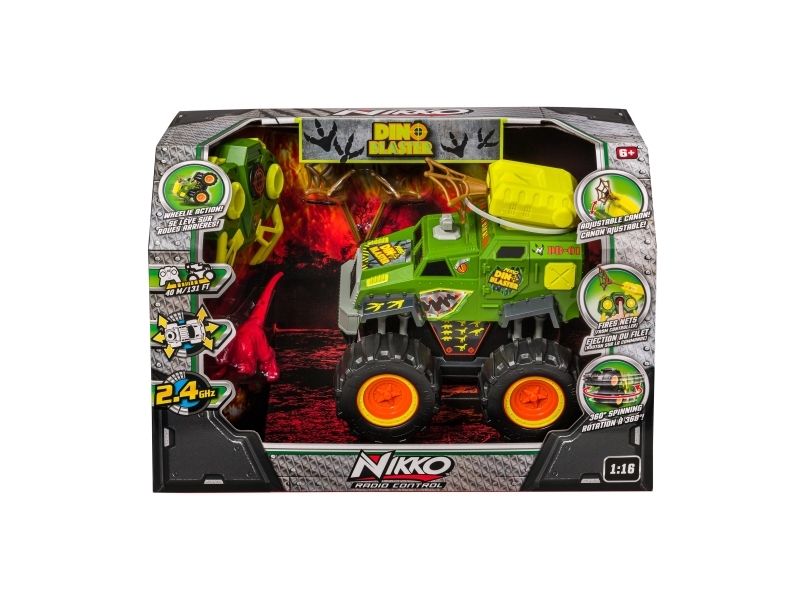 Jagt eller bliv jagtet! Tag med på en ekspedition, hvor du jagter dinosaurer med Nikko Dino Blasteren. Køretøjet er fuldt radiostyret (2,4GHz) med kort reaktionstid og har tankstyring, så du kan lave 360 graders vendinger, stejle og udmanøvrere din modstander. Tryk på knappen på fjernbetjeningen, og afskyd Dino Blasterens net for at fange det forhistoriske bytte. Fjernbetjeningen har en rækkevidde på 40 m og bruger 3 x AAA batterier (ikke inkluderet). Køretøjet bruger 4 x AA batterier (ikke inkluderet). Fra 6 år.