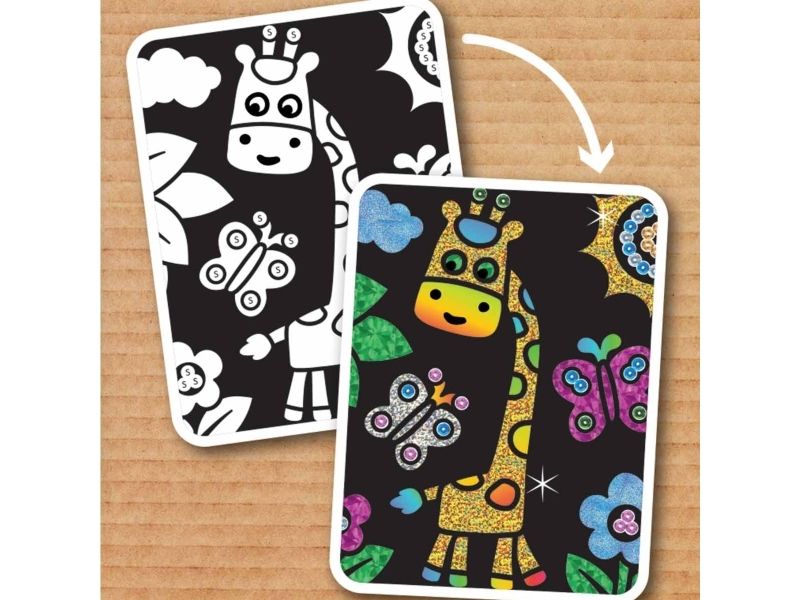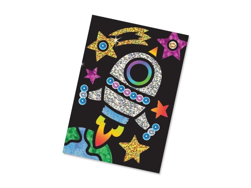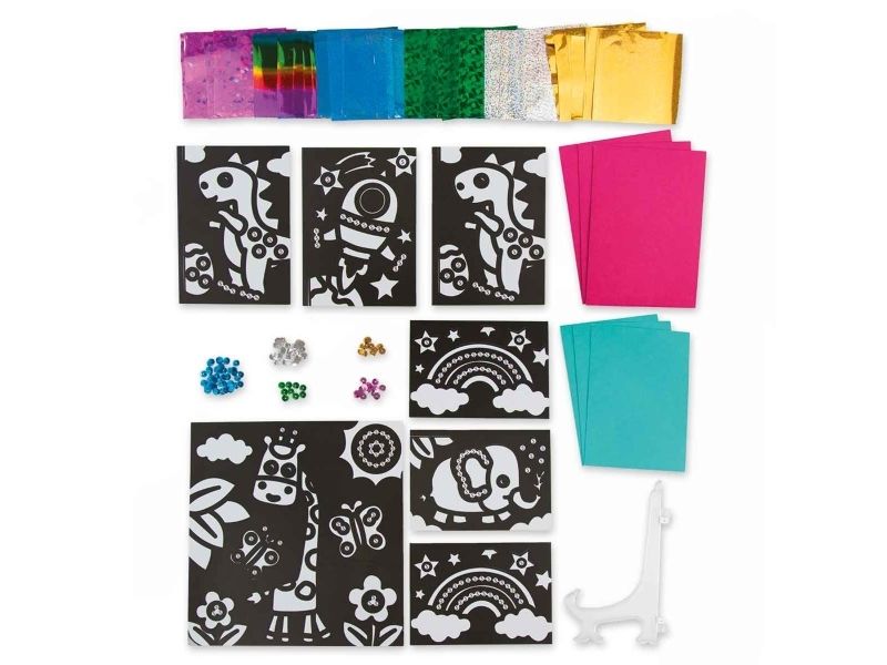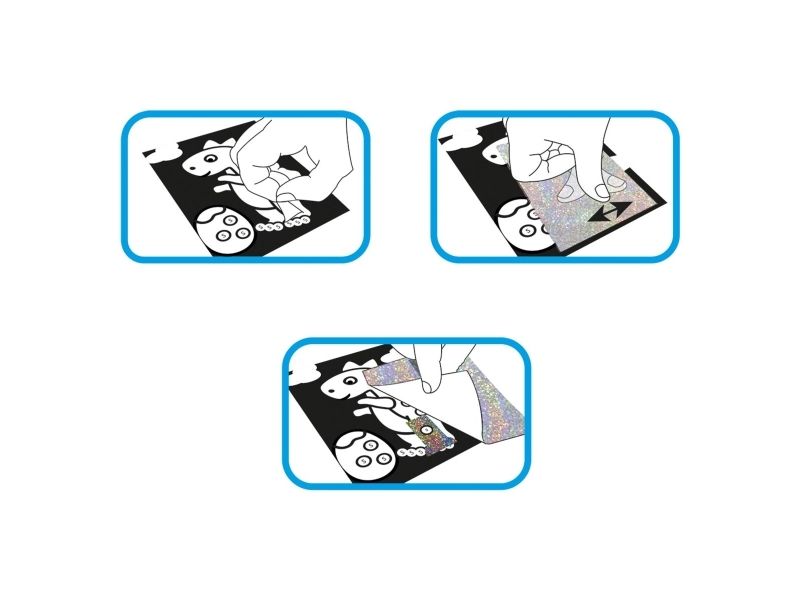 Skap strålende bilder og flotte kort! Du trenger bare å pille av en seksjon av bildet, plassere den så på folien, gni med fingeren din, og så vil den skinnende folien overføres til bildet ditt. Kommer med et plastikkstativ, som du kan utstille kreasjonene dine på. Fra 3 år.