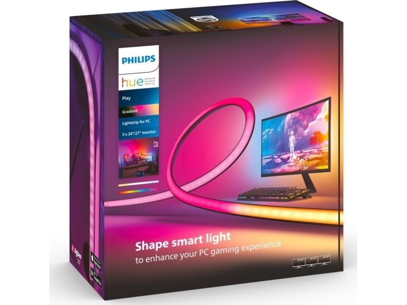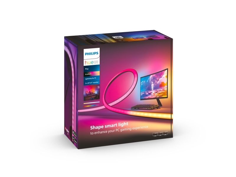 Få et responsivt og fargerikt gradientlys til spilloppsettet ditt! Fest Hue Play-gradient LED-lysstripen på baksiden av de tre 24"-27"-skjermene dine med de medfølgende holderne. Start synkroniseringen med Hue Sync-appen for å se hva som skjer på skjermen reflektert i lyset.