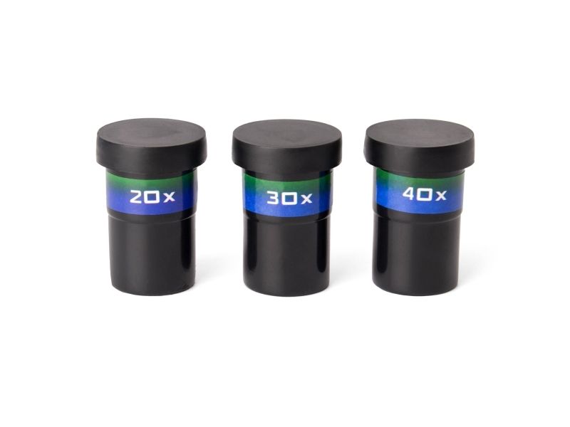 Med smussomslag, justerbart fokus, 3 forstørrelseslinser og stativ.