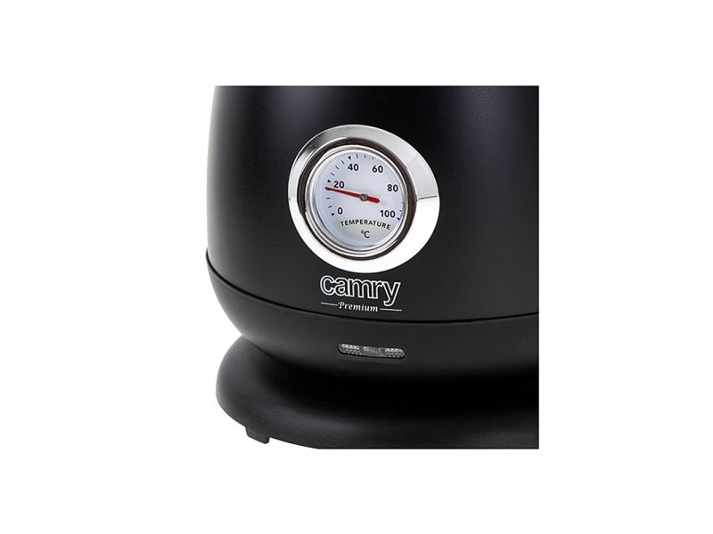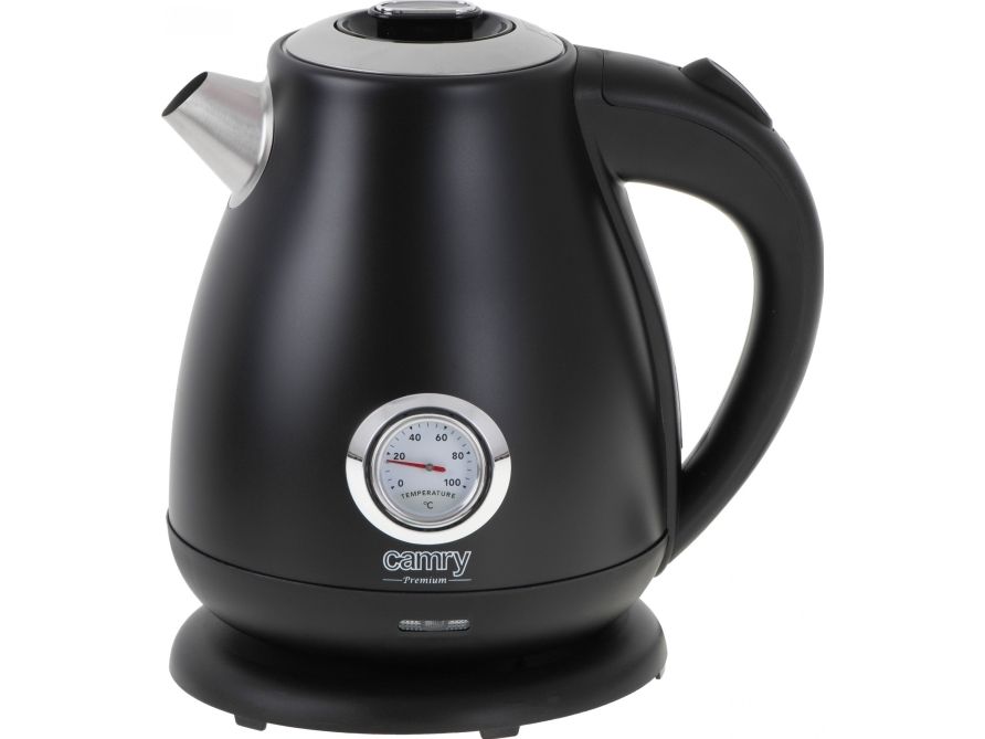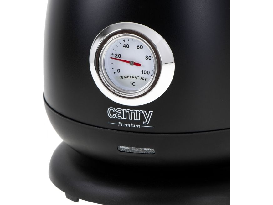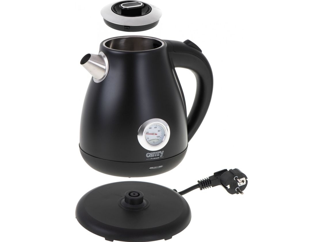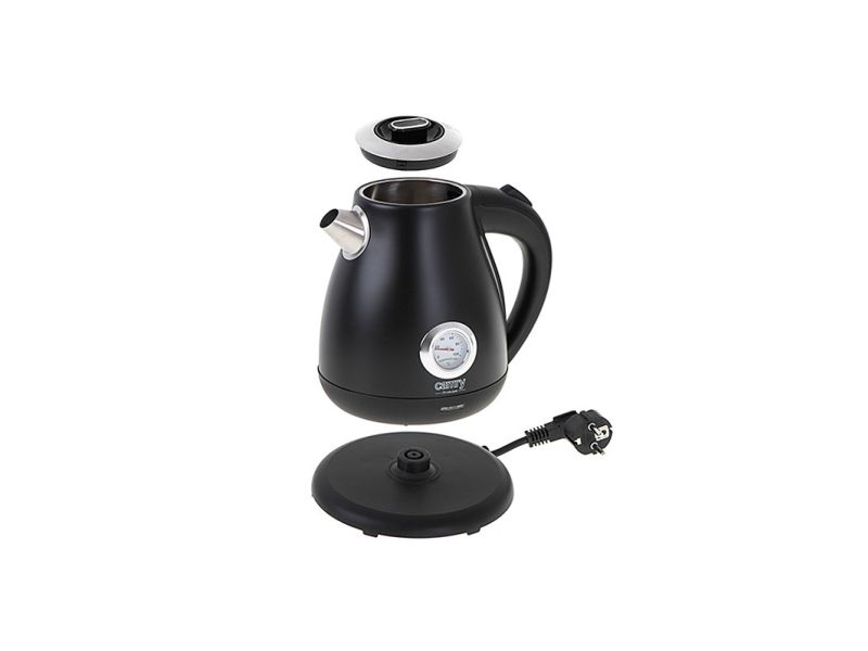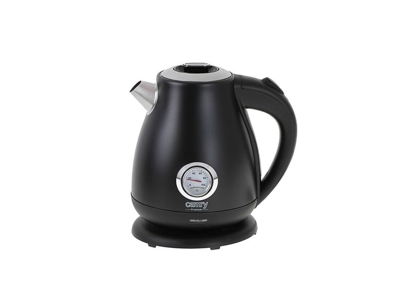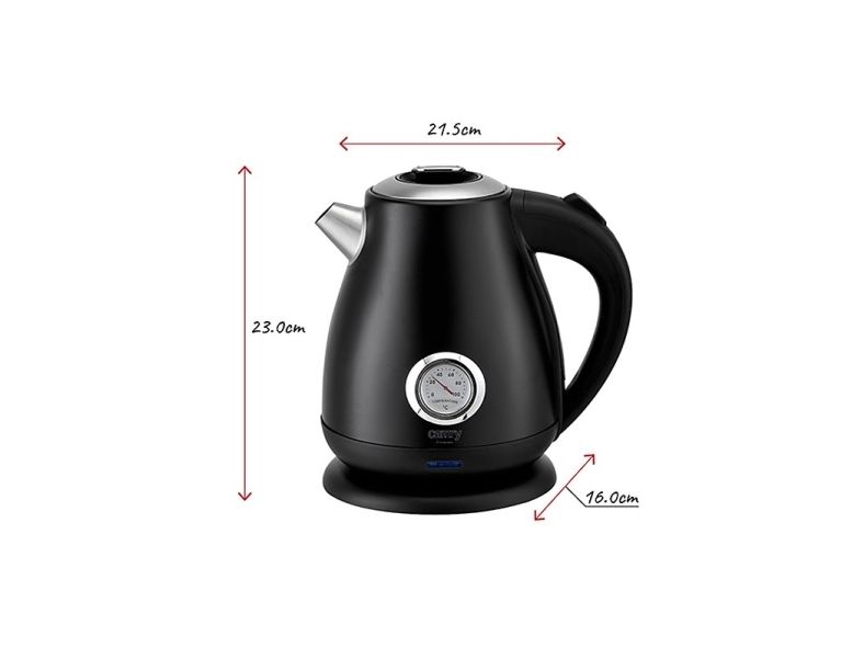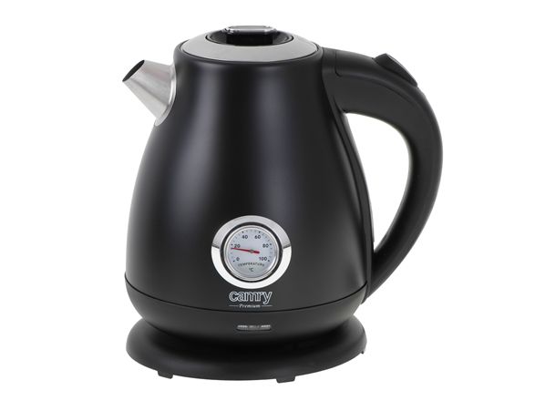 Max Power: 2200W, Nom. Power: 1850W. Max capacity: 1,7L. Stainless steel housing, Boil-dry protection. Electric kettle with a thermometer. Graduated water level. Analog water temperature meter. Rotary base 360 degree, Classic design.