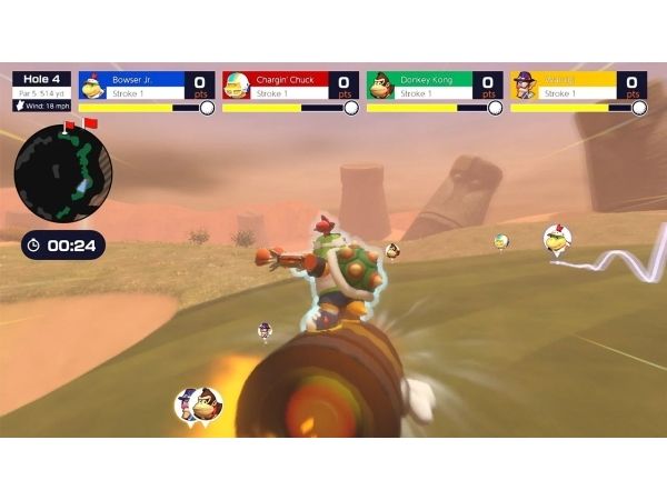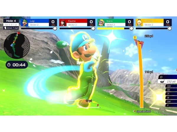 I Mario Golf: Super Rush kan du spille mot venner både lokalt eller over internett. Denne gangen kan du også bryne deg på den helt nye og kaotiske Speed Golf-modusen. Her starter alle samtidig i kampen om å komme først til greenen! Det finnes også en "Story"-modus, hvor du kan spille med din helt egen Mii-karakter! Spill som deg selv sammen med karakterer fra "Mushroom Kingdom" eller med andre Mii-venner. Konkurrer for å oppgradere karakteren din i dette fantastiske golfspillet til Nintendo Switch. Du kan selvfølgelig bruke Joy-Con-kontrolleren som en golfkølle for maksimal innlevelse om du ønsker det.