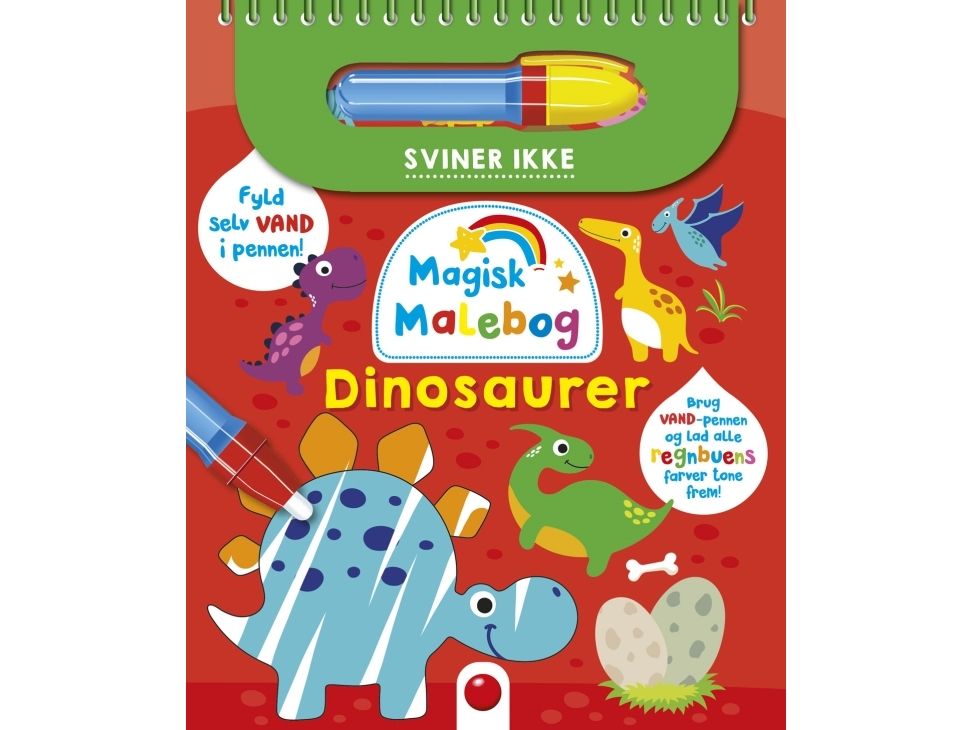 Magisk! Mal med vand! Fyld vand i pennen og farvelæg de 6 sider. Når motivet er tørt, er farven væk, så bogen kan bruges igen og igen!