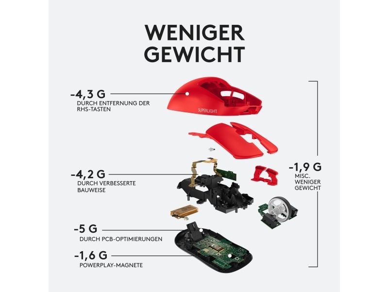 PRO X SUPERLIGHT veier mindre enn 63 g uten behov for de latterlige hullene.