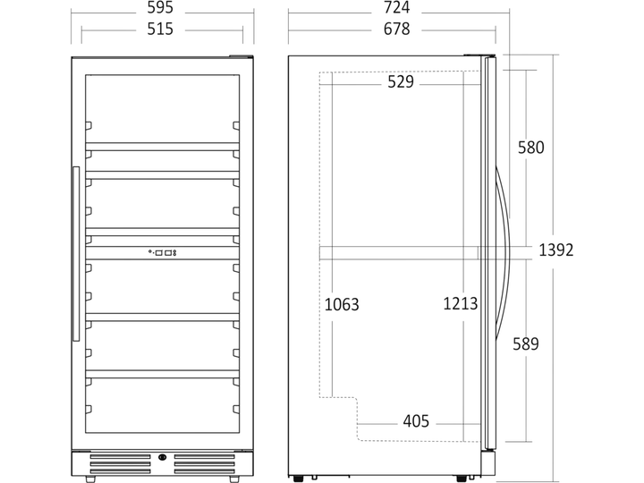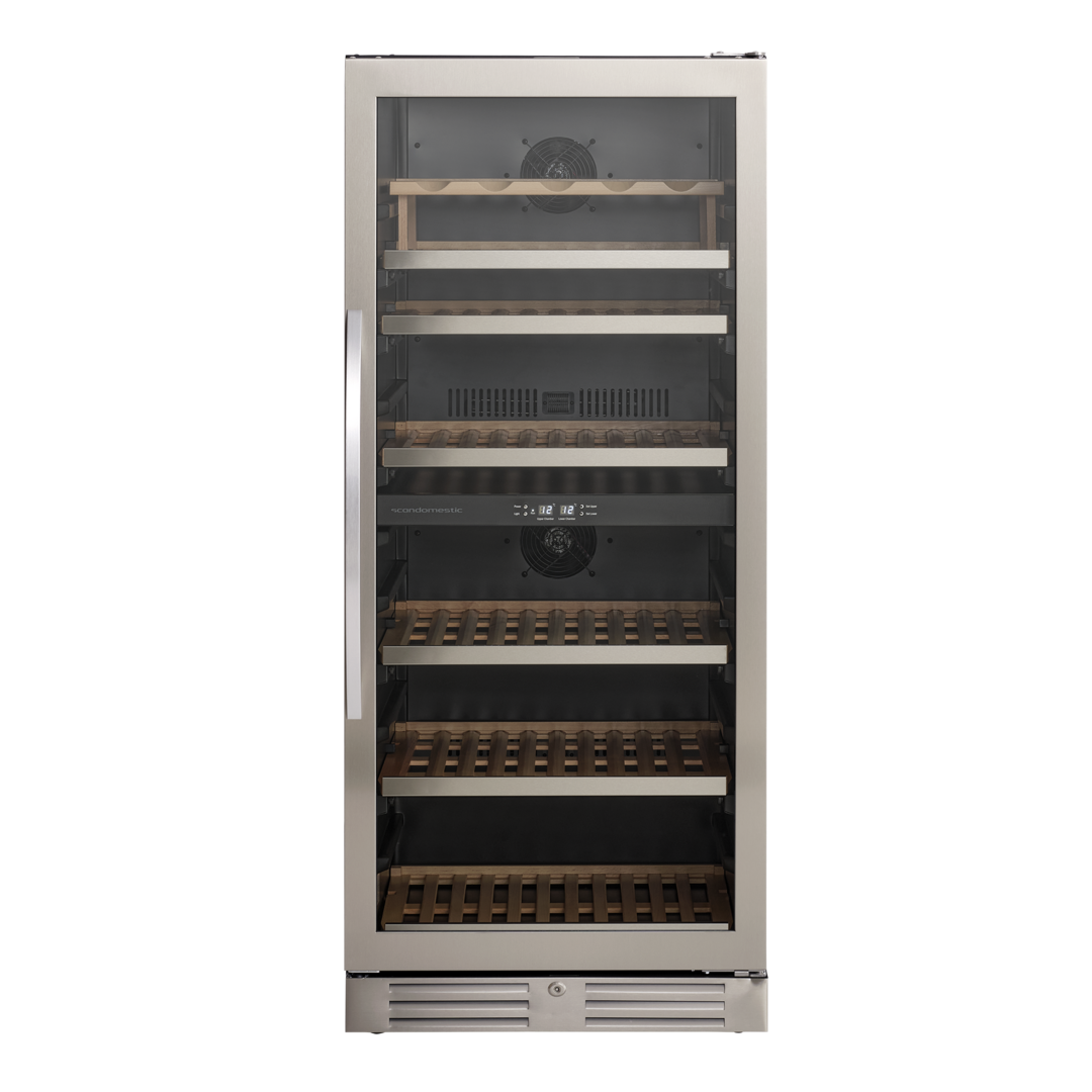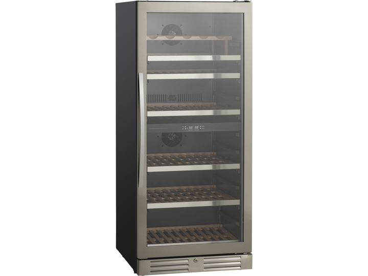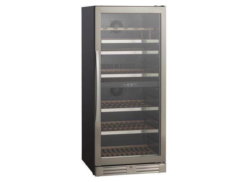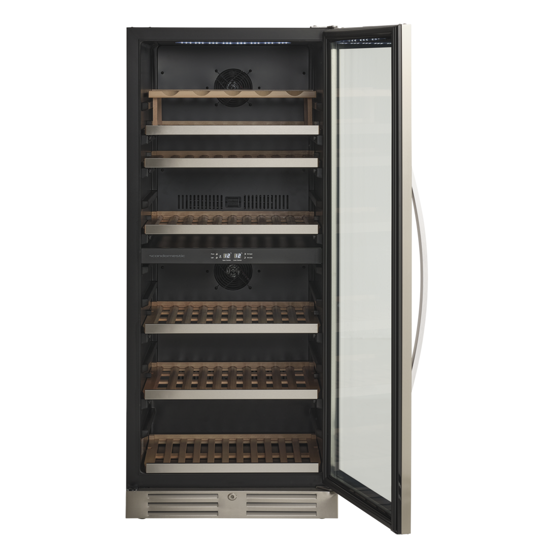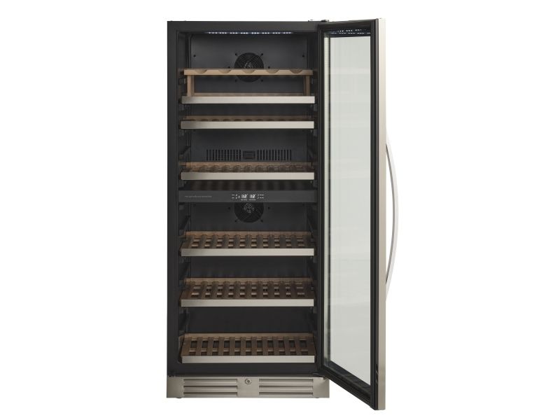 Den angivende flaskekapacitet er udregnet med en bordeauxflaske som standard og uden hylder i skabet. Dvs. at det faktiske antal af flasker som skabet kan indeholde, med hylder monteret, vil være mindre end den angivne mængde i produktets specifikationer.