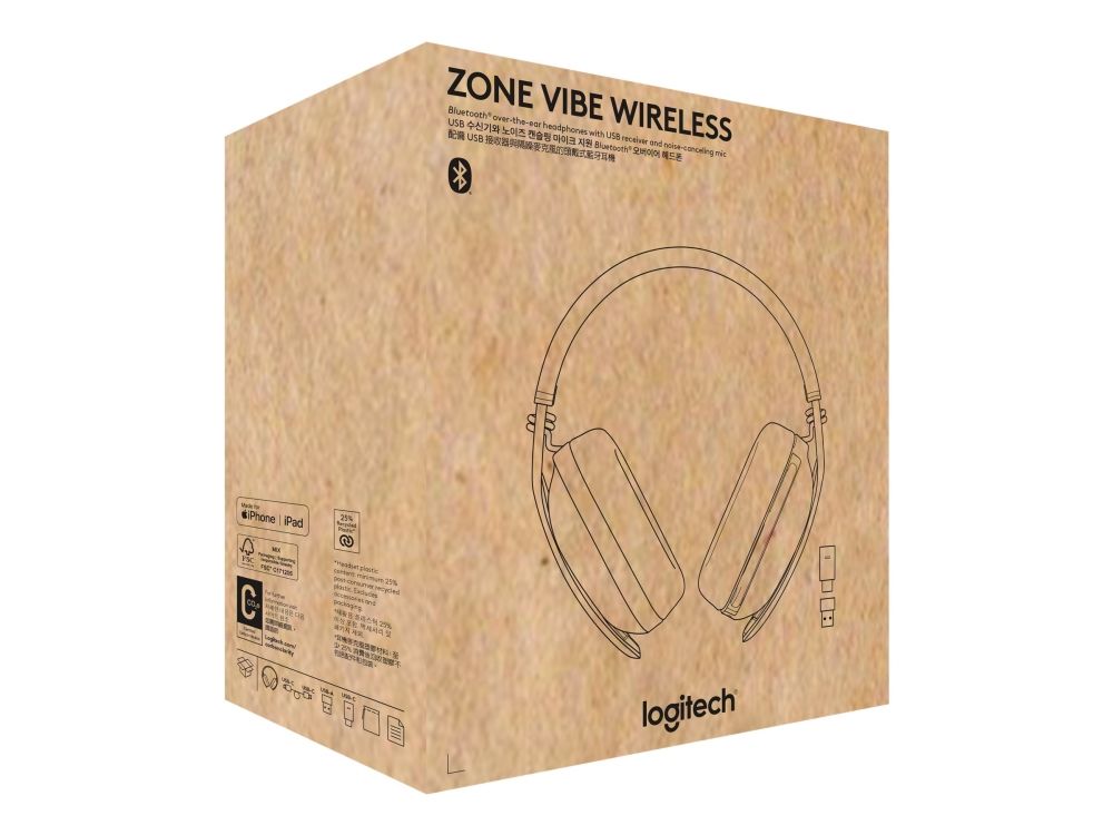 Logitech Zone Vibe Wireless - hodesett - USB-C via Bluetooth-adapter