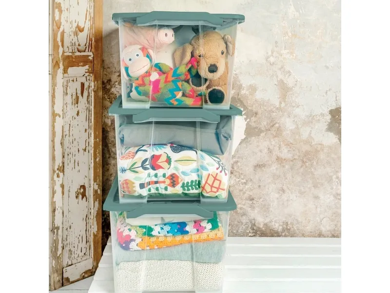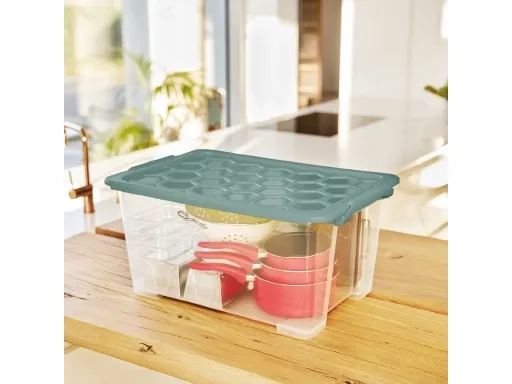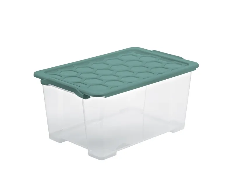 Product type- Storage boxes with lid. Brand- Rotho. Length- 58.3 cm. Width- 39.2 cm. Height- 27.7 cm. Box capacity- 44 l. Colour- Transparent, Green. Material- Plastic. Mandatory warranty- 24 mo.