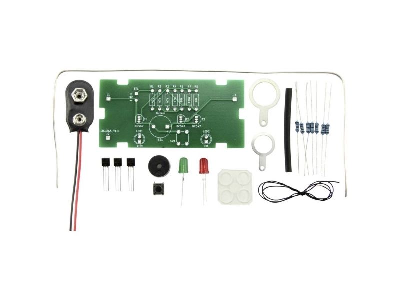 Loddebyggesæt i serien PERSONL fra SOLL-EXPERT - med det 5 stjernede koncept til perfekte lodde- og opbygningsresultater – til begyndere og professionelle!Med dette loddebyggesæt kan der opbygges en spændende færdighedsspil. Der skal være ført to forskellige øjer ud på tråden, så tråden ikke på noget tidspunkt berøres af et øje. Sker der en berøring, lyder bipsummen og de røde LED signaliserer: Desværre tabt, du nakkelhand smiley. Med tasten nulstilles kontakten, den grønne LED begynder at lyse igen, summer muzler og så går det løs på en ny måde. To forskellige øskner i diameter muliggør 2 forskellige vanskelige niveauer. Som strømforsyning anvendes et almindeligt 9 V batteri (medfølger ikke).Loddebyggesættet varm tråd egner sig takket være den detaljerede farvede vejledning til elvnører, små og store elingeniører, spillere, loddeangere, elever og alle, der har lyst og sjov ved lodning. Det gennemtænkte konstruktionskoncept på dette lodde-byggesæt muliggør også lodde-begyndere de første skridt i elektronikkens og løttens spændende verden.PERSONL-serien fra Sol-EXPERT group med det 5 stjernede koncept:VejledningenVejledningen, der følger med produktet, er udviklet med fagfolk og pædagoger, så alle brugere kan få et perfekt lodde- og monteringsresultat. Den indeholder generelle tips og anvisninger til forarbejdning af komponenterne. Trin for trin beskrives i detaljer alle enkelte arbejdsgange med forståelige illustrationer. Alle komponenter vises med deres værdier, koblingssymboler og detaljer. Naturligvis er vejledningen udformet i 4 farver, da det gør det betydeligt nemmere at tildele enkelte komponenter såsom modstande, dioder og så videre. Generelt tips og tricksDer findes en QR-kode på hver vejledning. Med en mobiltelefon eller tablet fører den til en videosekvens, der er oprettet af Sol-EXPERT. De indeholder generelle og vigtige tips og tricks i forbindelse med lodning. Uanset om der skal loddes på trådede komponenter eller de betydeligt mindre SMD-komponenter, så viser filmen, hvordan det skal ske, forståelig og forklarende kommentarer. Det gør det nemmere at starte med hobby elektronik og lodning betydeligt og animerer til mere! Printkortet for større succesPå alle printplader er de enkelte komponentpositioner og naturligvis også den så vigtige komponentpoling påtrykt. I forbindelse med vejledningen forhindres dette fejlbestykninger og garanterer dermed en senere succesoplevelse.Hjælpemidlerne til en fantastisk optikTil alle loddebyggesæt fra Sol-EXPERT medfølger en hjælp til bøjning. Med den kan trådene i modstande og dioder bøjes så disse komponenter ligger præcist i midten mellem loddeøskner. Resultatet er et perfekt udstyret og visuelt tiltalende kort. Kvalitet, som loddet fra den professionelle, kan også laie med et loddebyggesæt fra Sol-EXPERT. Vejledning Viral og onlineVejledningen til hvert enkelt sæt loddemateriale i serien »PERSONL« fra Sol-EXPERT er blevet filmet og er tilgængelig på internettet. De genererede videoer giver en imponerende detaljegengivelse og ledsager hver enkelt arbejdsgang, samt de trykte vejledninger. Alle vejledninger kan hentes via den tilsvarende QR-kode. Hvis man hellere vil have en visuel vejledning, er man godt hjulpet.