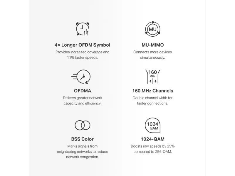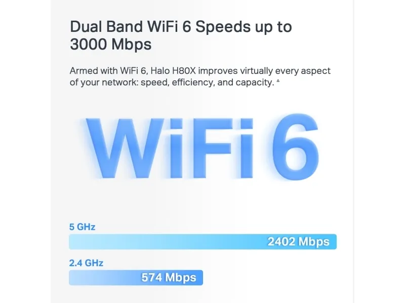 Improved Capacity Enhanced by WiFi 6’s OFDMA and MU-MIMO technology, Halo H80X lets you connect over 150 devices at once. Enjoy a more efficient network that loads faster without dragging down performance.