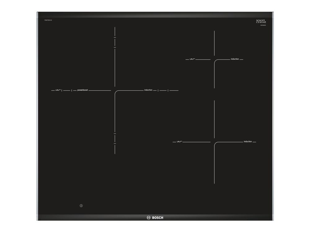 1 x induksjonselement - PowerBoost - 2200/2600/3300/5500 W - 210/260/320 mm 1 x induksjonselement - PowerBoost - 1400/2200 W - 145 mm 1 x induksjonselement - PowerBoost - 2200/3700 W - 210 mm