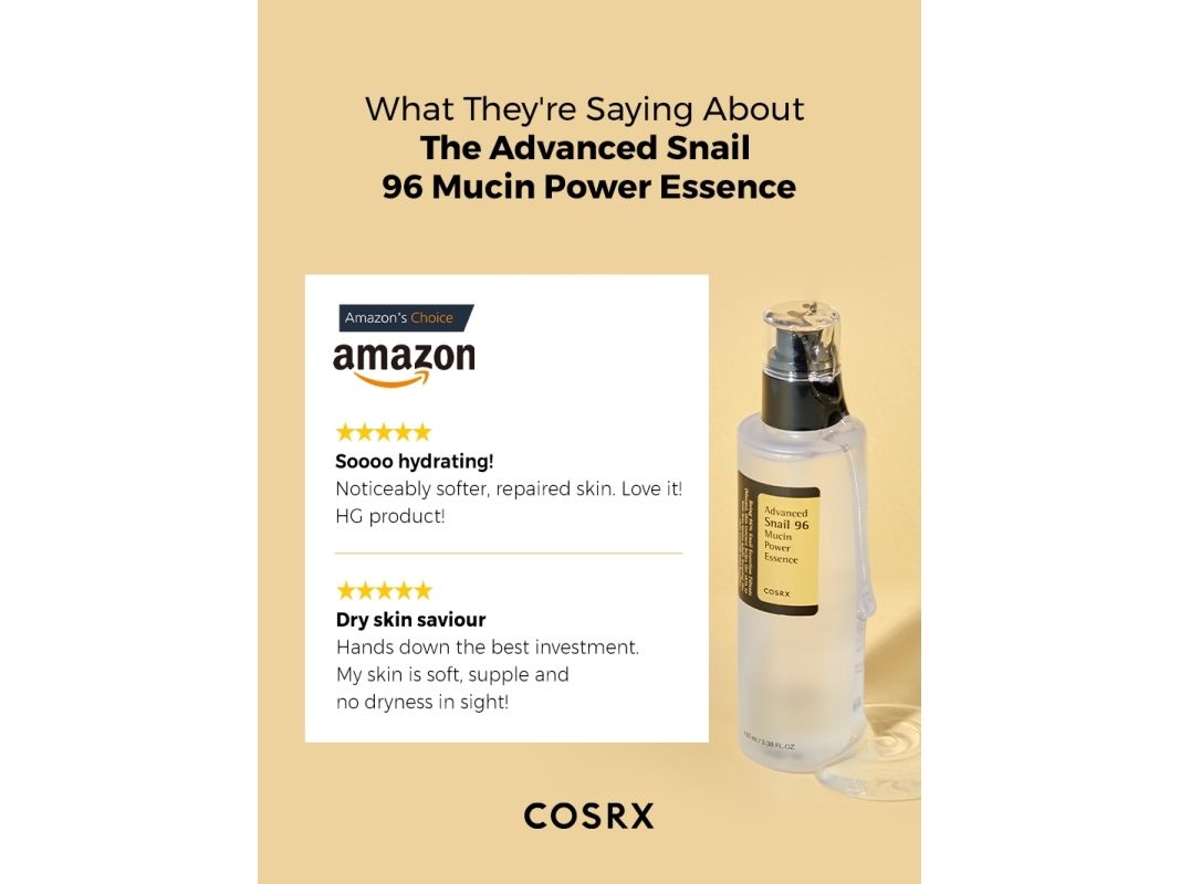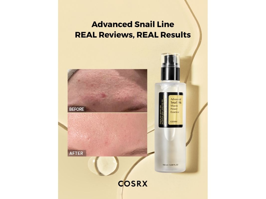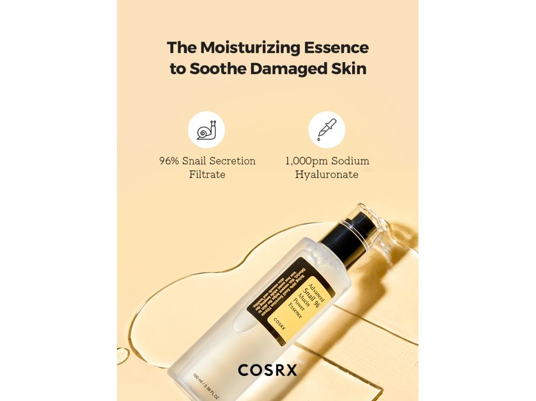 Advanced Snail 96 Power Essence fra Cosrx er din perfekte makker til creme og sera, der indeholder retinol, AHA/BHA syrer og/eller C-vitamin. Med sine stærkt genopbyggende og plejende egenskaber, beskytter snegleslim huden mod de irritationer, der kan opstå i huden ved brug af aktive ingredienser.