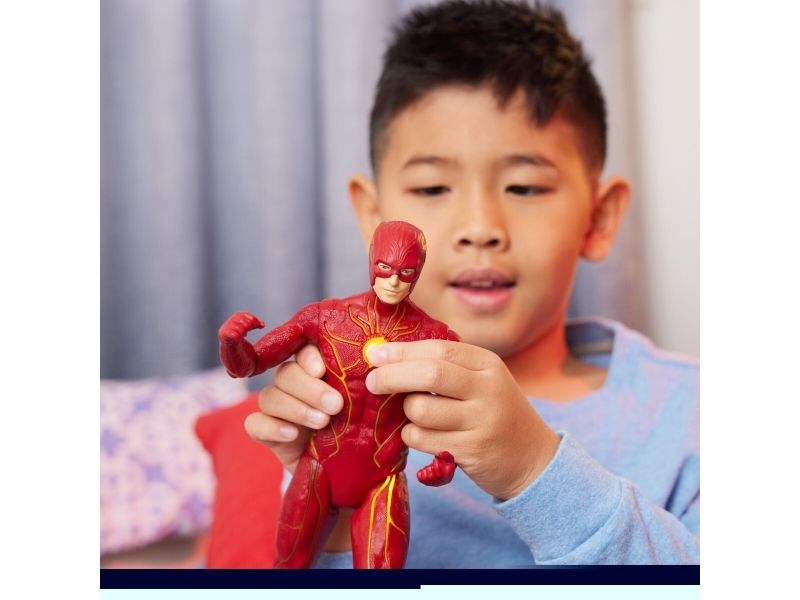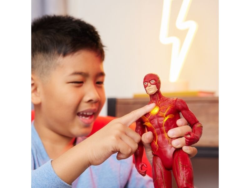 Super fart med Speed Force The Flash actionfiguren! Super-skurke har ikke en chance mod den hurtigste mand i live! Denne 30 cm actionfigur har autentisk filmstyling, lys, lyde og 11 artikulationspunkter. Lås op for lynhastighed ved at trykke Flash på brystet. Se, mens han lyser op og går i løbetilstand! Ryst figuren for lys og lyde. Børn elsker at engagere deres fantasi og skabe deres egne Flash vs. Superskurke-kampe. Har du det, der skal til for at redde verden? Med en række figurer at indsamle fra The Flash-filmen kan du nu udvide DC-actionfigursamlingen med The Flash, Dark Flash, Batman og mere (hver sælges separat). Dette er en fantastisk gaveide til DC-fans og superhelte-entusiaster. Tag dine foretrukne Flash-figurer med hjem med Flash 30 cm actionfigurer!