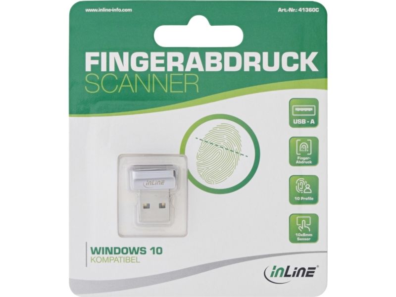 The InLine® USB fingerprint scanner makes it easy to log in to the Windows 10 operating system without entering a password. The unlocking is done by fingerprint via the Hello login function of Windows (available from Windows 10).InLine USB Fingerprint Scanner, Windows Hello compatible. Windows operating systems supported: Windows 10. Width: 21 mm, Depth: 12 mm, Height: 18 mm. Product colour: Multicolour