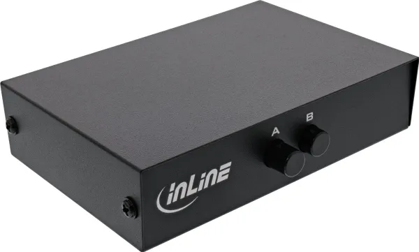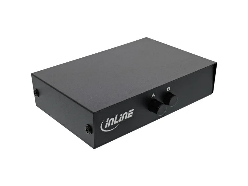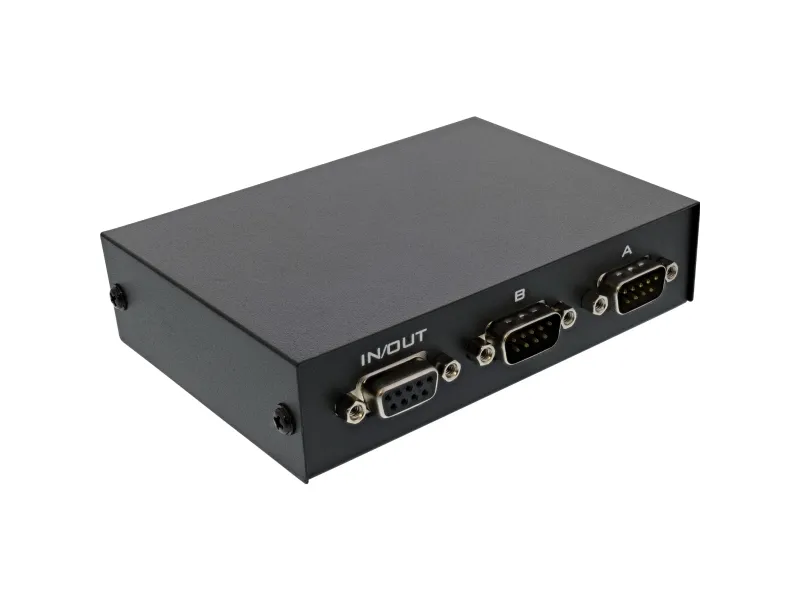 This manual data switch enables easy splitting of serial signals or similar via the 9-pole Sub-D interface between one input and 2 outputs or vice versa. The switchover is purely mechanical, no additional power supply is required. The shielding is occupiedInLine Serial switch manual 2-port, RS232, 9-pin Sub-D. Width: 85 mm, Depth: 120 mm, Height: 30 mm. Package width: 95 mm, Package depth: 125 mm, Package height: 35 mm