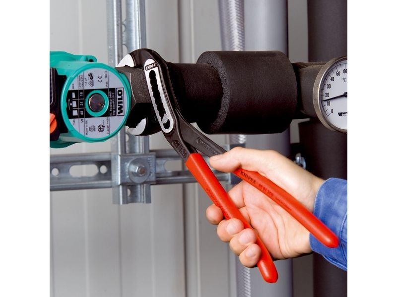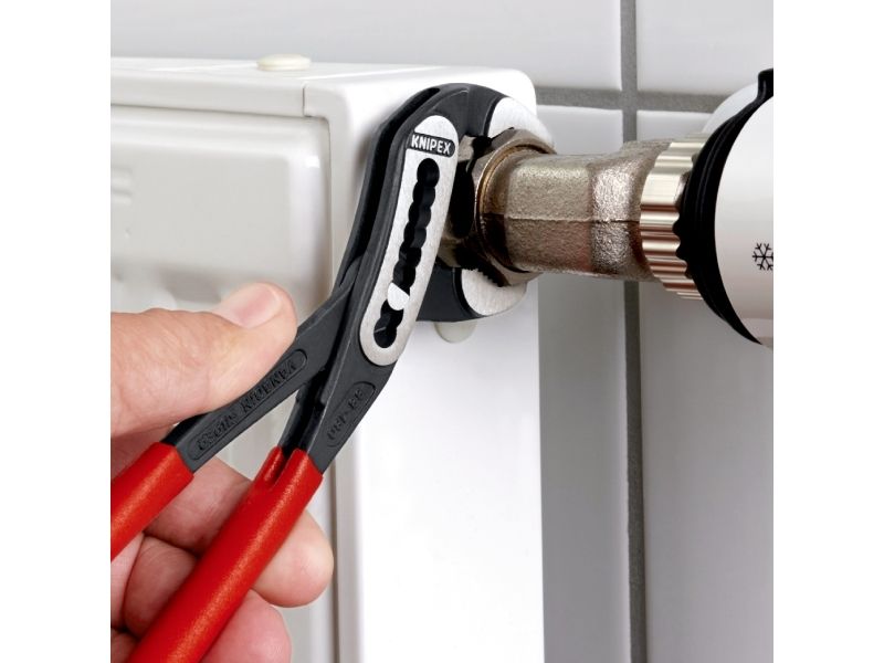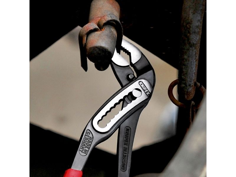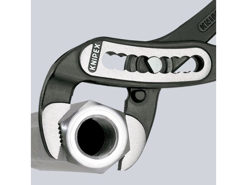 god adgang til arbejdsemnet pga. særdeles slank form i hoved- og ledområdet. større ydelse og komfort i sammenligning med almindelige vandpumpetænger med samme længde: stopindstilling i 9 trin for 30 % større gribekapacitet. Selvspændende på rør og møtrikker: ingen glidning på emnet, energibesparende arbejde. Gribeflader med specialhærdede tænder, tændernes hårdhed ca. 61 HRC: vedvarende sikkert greb pga. høj slidstyrke. Gennemstukket led: høj stabilitet pga. dobbelt føring. Robust konstruktion, ufølsom mod tilsmudsning, særligt velegnet til arbejde udendørs. Klembeskyttelse forhindrer sammenklemningskvæstelser.