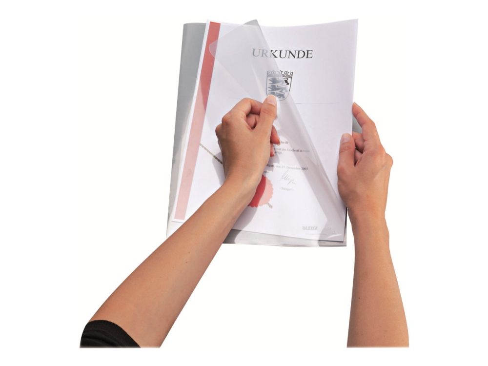 Ekstra kraftig og holdbart omslag for daglig bruk. Praktisk til midlertidig oppbevaring av dokumenter.