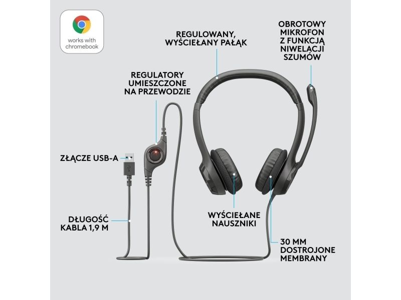 Et allsidig usb-headset med et justerbart, polstret hodebånd som gjør det behagelig å høre på digitallyd.