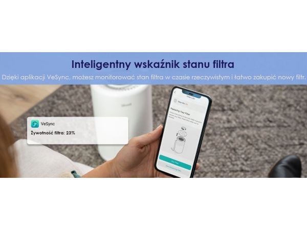 Use the free VeSync app to connect the air purifier to Amazon Alexa or Google Assistant.