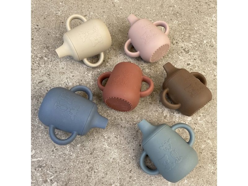 Vores Aiko silikone kop har et aftageligt låg med en lille tud og håndtag - den perfekte træningskop til små børn der skal lære at drikke selv. Håndtagene sikrer et stramt greb, som gør det nemmere for dit barn at drikke selv.