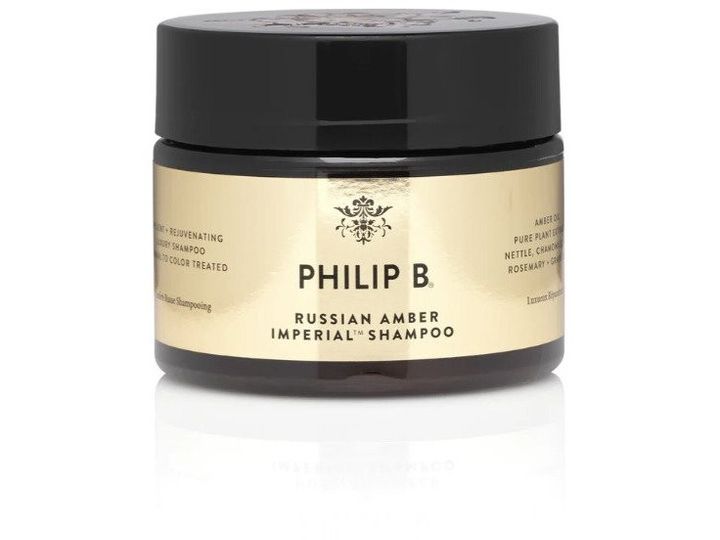 PHILIP B ® Russian Amber Shampoo er fremstillet med lækker, sanselig ravolie, panthenol (vitamin B5), der styrker håret, med fugtgivende shea butter og en aromatisk, botanisk blanding af brændenælde, kamille, burre, rosmarin, salvie og vindruekerner, der genopretter hårets optimale glans. PHILIP B® Russian Amber Shampoo fuldender dit hår med foryngende og luksuriøs pleje. Til normalt og farvet hår.