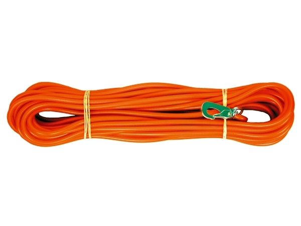 Lätt och följsam spårlina med karbinhake. Perfekt att använda vid motionsträning, spår- och inkallningsövningar av olika slag. Enkel att hålla ren och fastnar inte i snår. Linan är av naturgummiblandning med en förstärkt kärna av polyester.