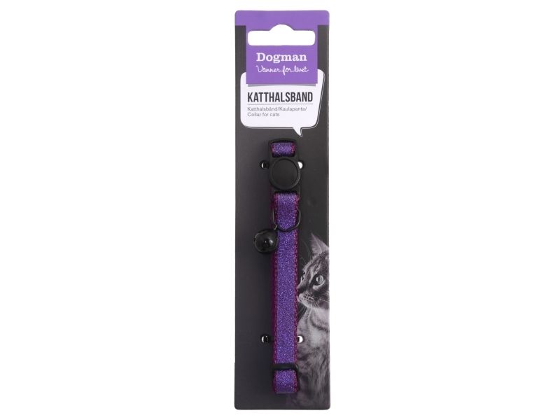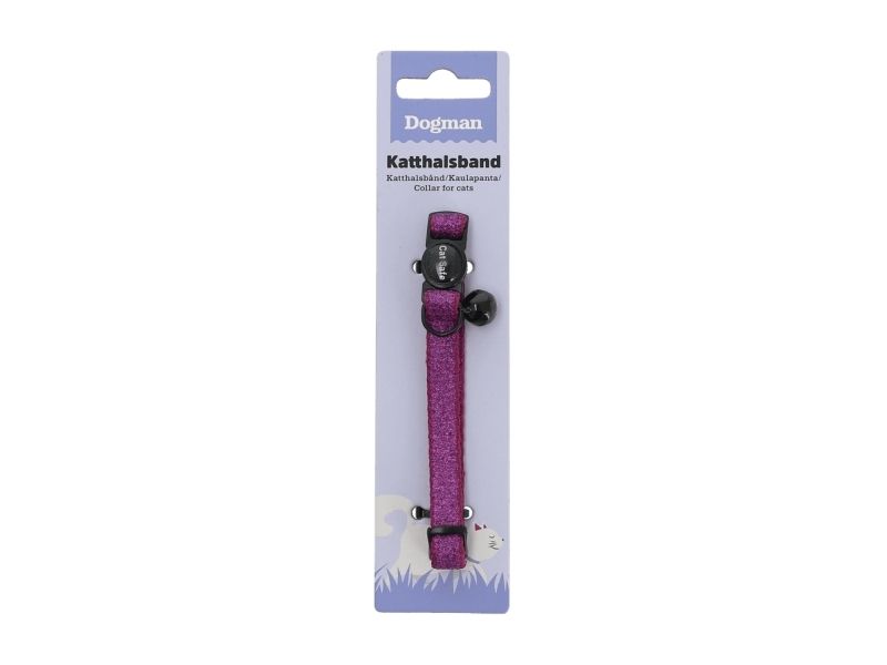 Glittrande katthalsband med Cate safe säkerhetslås som öppnar sig om din katt skulle fastna med halsbandet i någonting. Bjällra för att skydda småfåglarna och justerbar längd max 30cm.