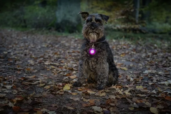 LED-blinklampa i silikon med upp till 100h batteritid, utbytbara batterier CR2032. Regntålig och synlig upp till 300m. Välj om du vill ha blinkande eller fast sken. Kan enkelt fästas runt halsband, på hundens sele och kopplet.