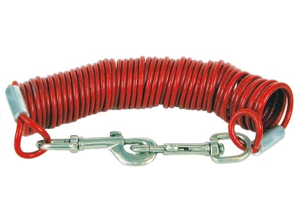 Vinylklädd spiralvajer att användas som förlängning till löplina/uppkopplingsskruv. Lämna aldrig din hund uppbunden utan uppsikt.