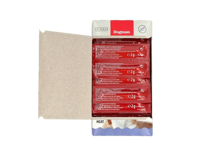 Utsökt kattgodis i form av mjuka sticks i smakerna malt, leverkorv, ost och salami. Med hög kötthalt, 95%. Ges antingen hel eller delas i mindre bitar. Utan tillsatt socker. Ges som godis vid sidan av en balanserad kost.