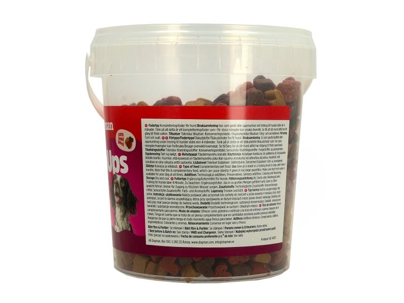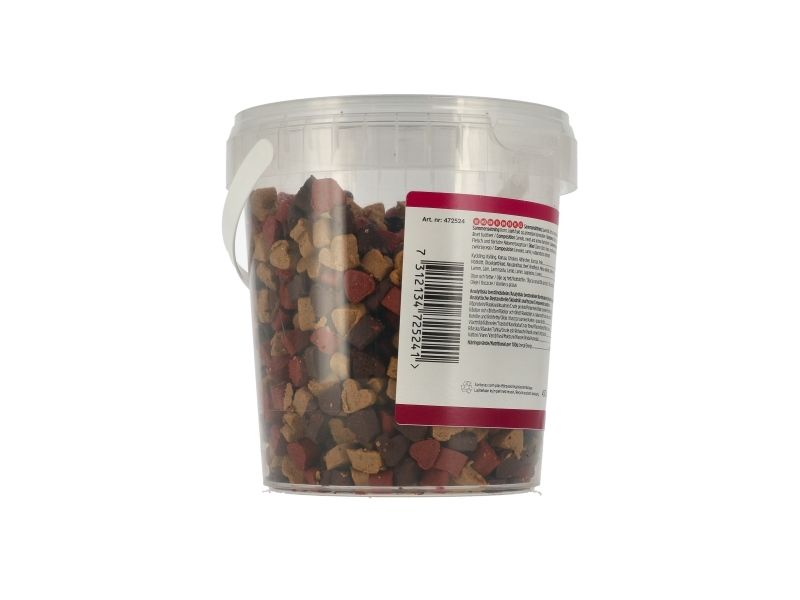 Extra små, mjuka belöningsbitar med mumsig smak av kyckling, biff o lamm. Hundgodiset passar perfekt till träning eller promenaden! Utan tillsatt socker. Kommer i en praktisk och återförslutningsbar förpackning. Ges som godis vid sidan av en balanserad kost. Energi: 310kcal/100g.