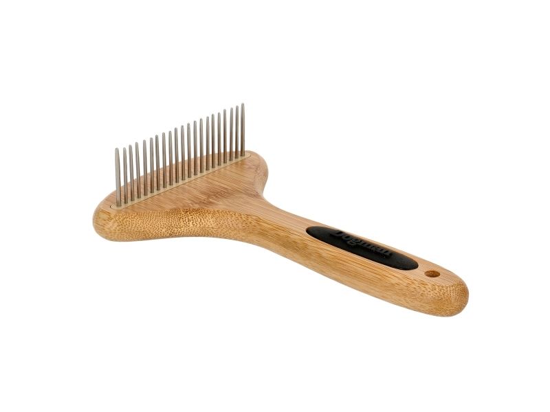 Grovtandad karda med roterande tänder som gör att den lättare glider genom pälsen. Reder ut tovig päls och tar bort underull ur medellång och lång päls.